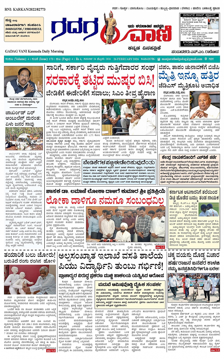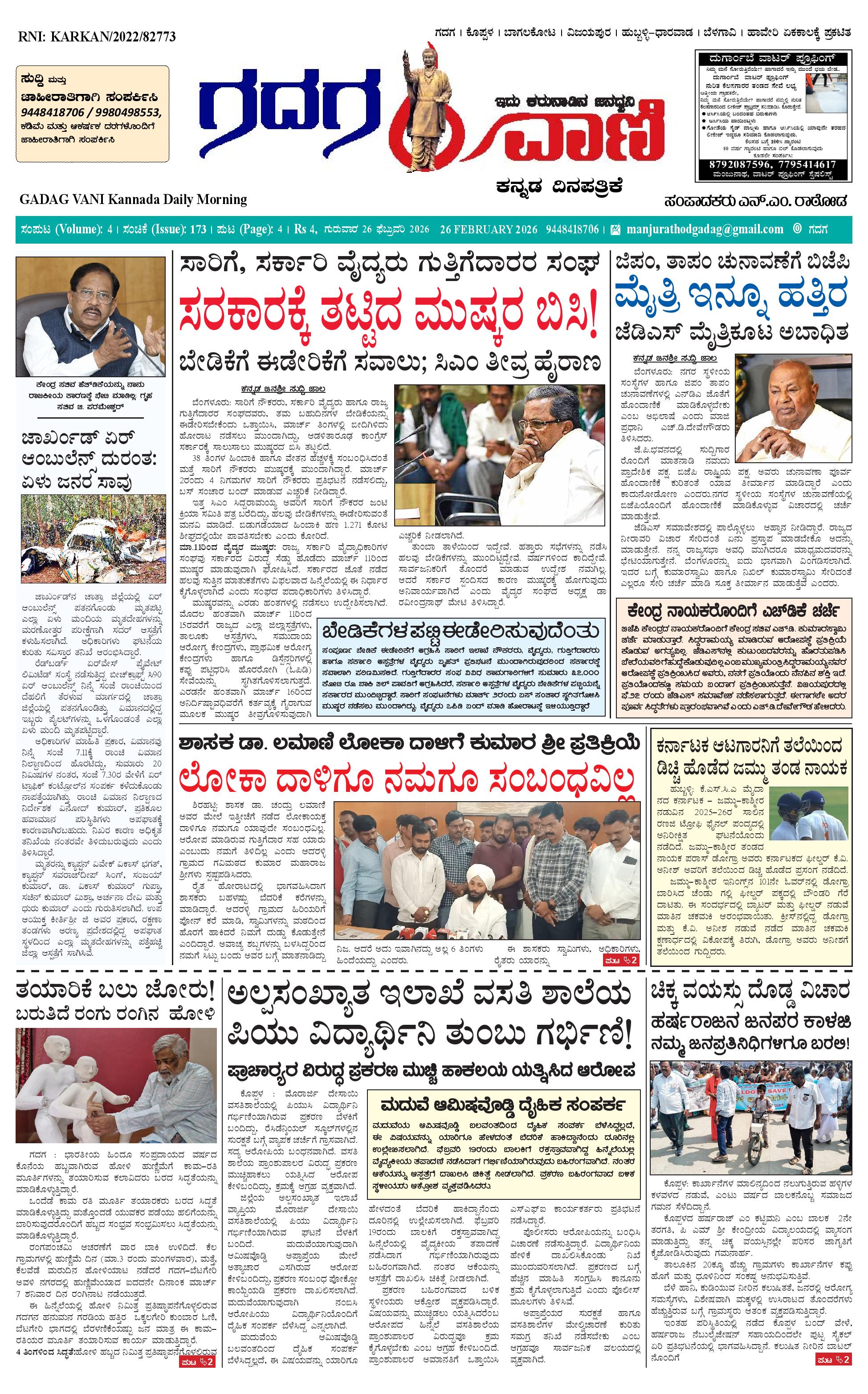 ಗದಗ ವಾಣಿ 26 Feb 2026 February 26, 2026 << First << 1 >> Last >> Page 1Page 2Page 3Page 4 × ಗದಗ ವಾಣಿ 26 Feb 2026 Gadagavani----26-02-2026-page-001Gadagavani----26-02-2026-page-002Gadagavani----26-02-2026-page-003Gadagavani----26-02-2026-page-004 << First << 1 >> Last >> Gadagavani----26-02-2026-page-001Gadagavani----26-02-2026-page-002Gadagavani----26-02-2026-page-003Gadagavani----26-02-2026-page-004 Gadagavani----26-02-2026-page-001