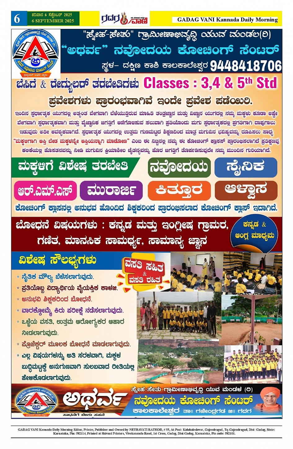 ಗದಗ ವಾಣಿ 06 SEPT 2025 Page: 6 September 06, 2025 << First << 6 >> Last >> Page 1Page 2Page 3Page 4Page 5Page 6 × ಗದಗ ವಾಣಿ 06 SEPT 2025 1234506.09.2025 GADAGVANI PG 06-page-006 << First << 6 >> Last >> 1234506.09.2025 GADAGVANI PG 06-page-006 06.09.2025 GADAGVANI PG 06-page-006