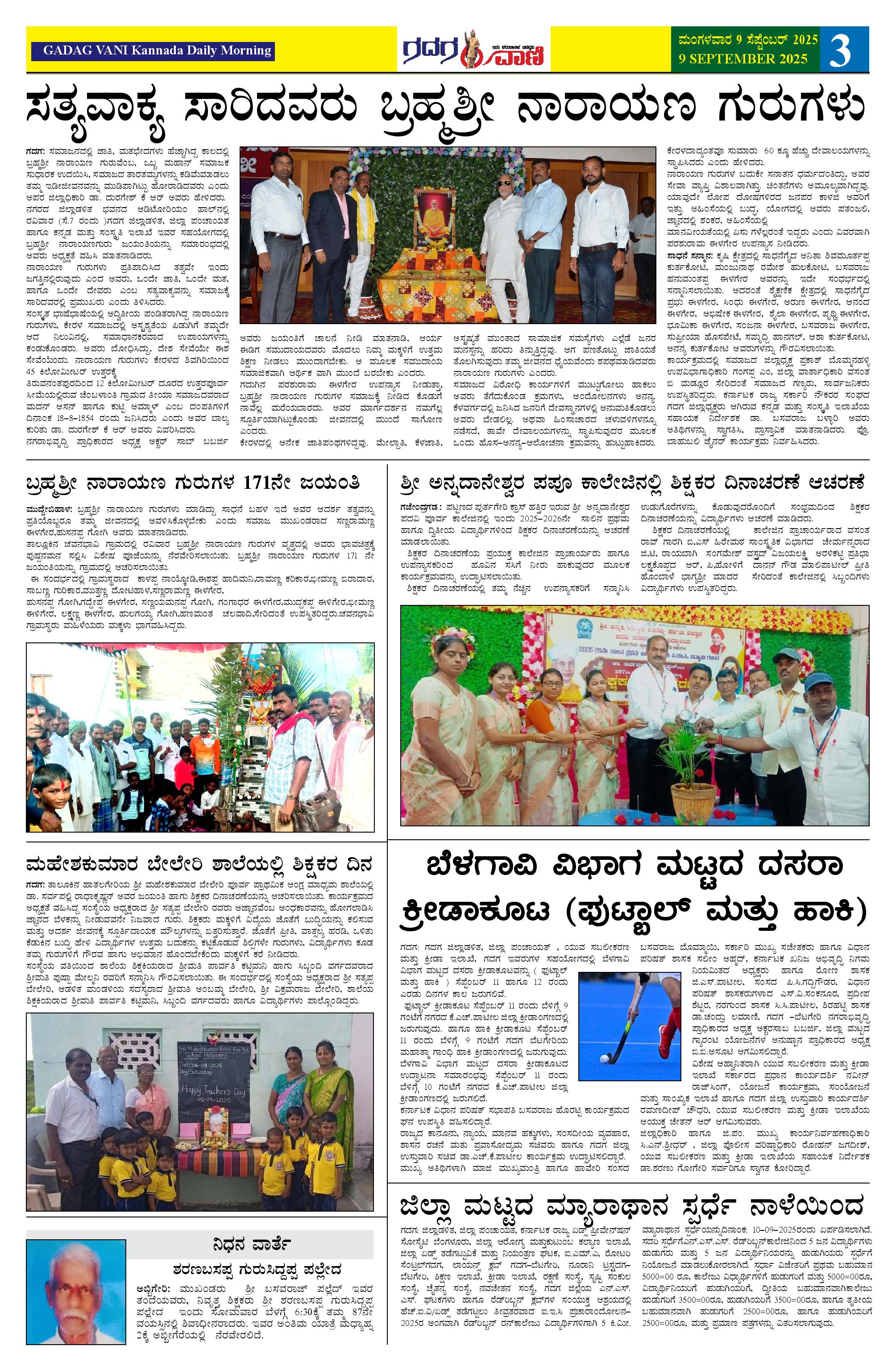 ಗದಗ ವಾಣಿ 09 SEPT 2025 Page: 3 September 09, 2025 << First << 3 >> Last >> Page 1Page 2Page 3Page 4Page 5Page 6 × ಗದಗ ವಾಣಿ 09 SEPT 2025 123456 << First << 3 >> Last >> 123456 3