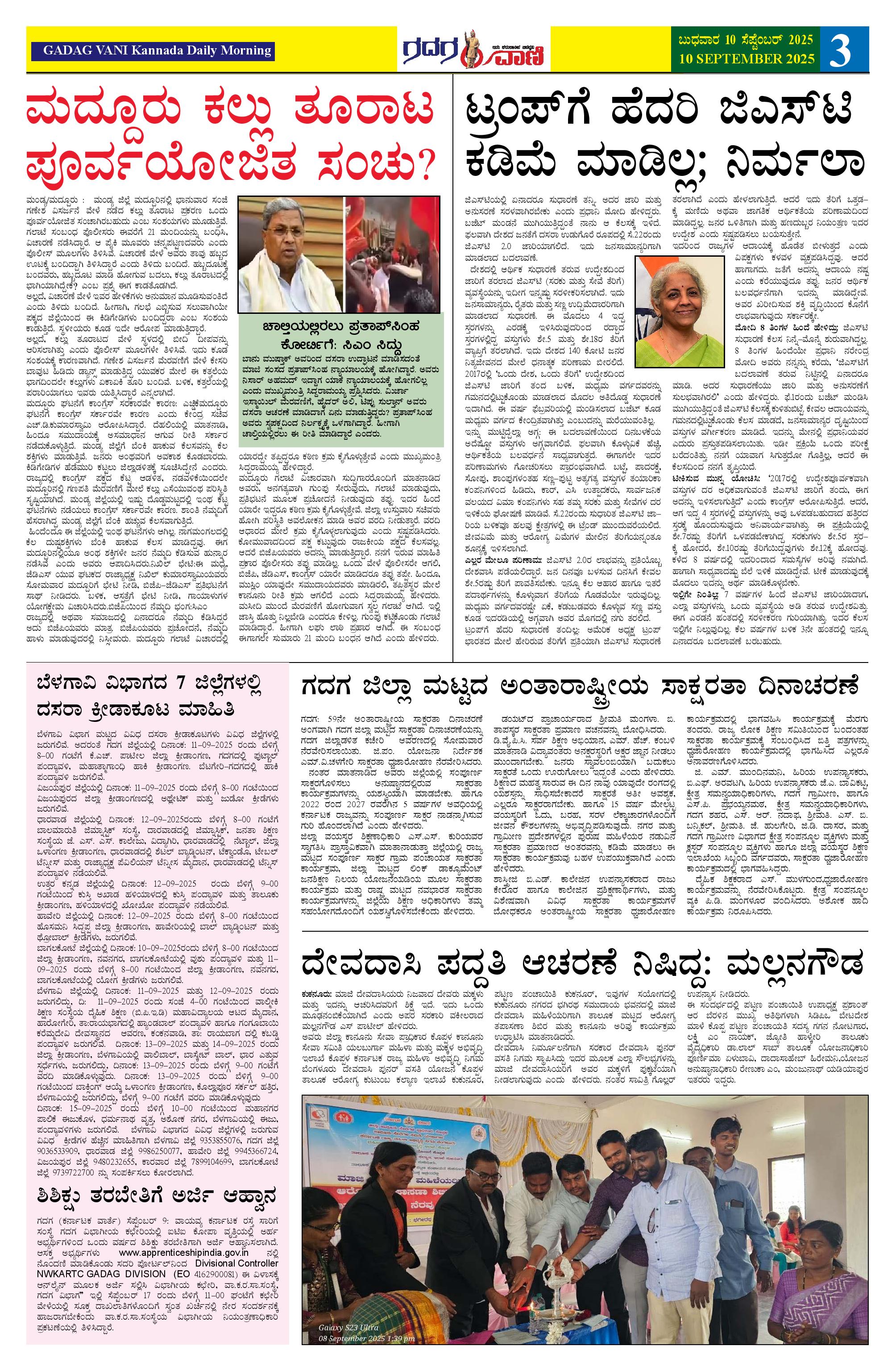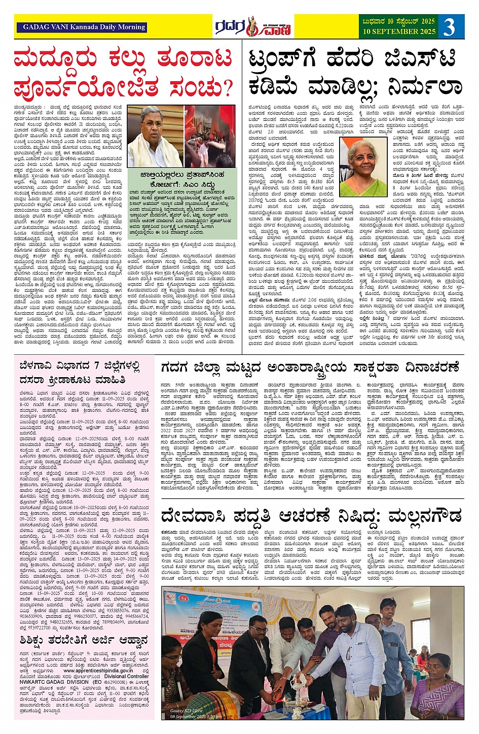 ಗದಗ ವಾಣಿ 10 SEPT 2025 Page: 3 September 10, 2025 << First << 3 >> Last >> Page 1Page 2Page 3Page 4Page 5Page 6 × ಗದಗ ವಾಣಿ 10 SEPT 2025 1234510.09.2025 GADAGVANI PG 06-page-006 << First << 3 >> Last >> 1234510.09.2025 GADAGVANI PG 06-page-006 3