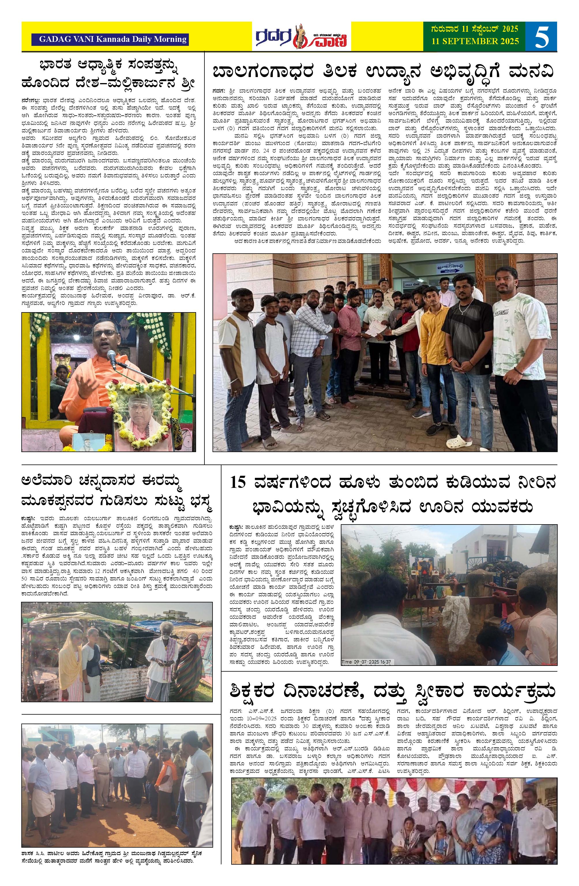 ಗದಗ ವಾಣಿ 11 SEPT 2025 Page: 5 September 11, 2025 << First << 5 >> Last >> Page 1Page 2Page 3Page 4Page 5Page 6 × ಗದಗ ವಾಣಿ 11 SEPT 2025 123456 << First << 5 >> Last >> 123456 5