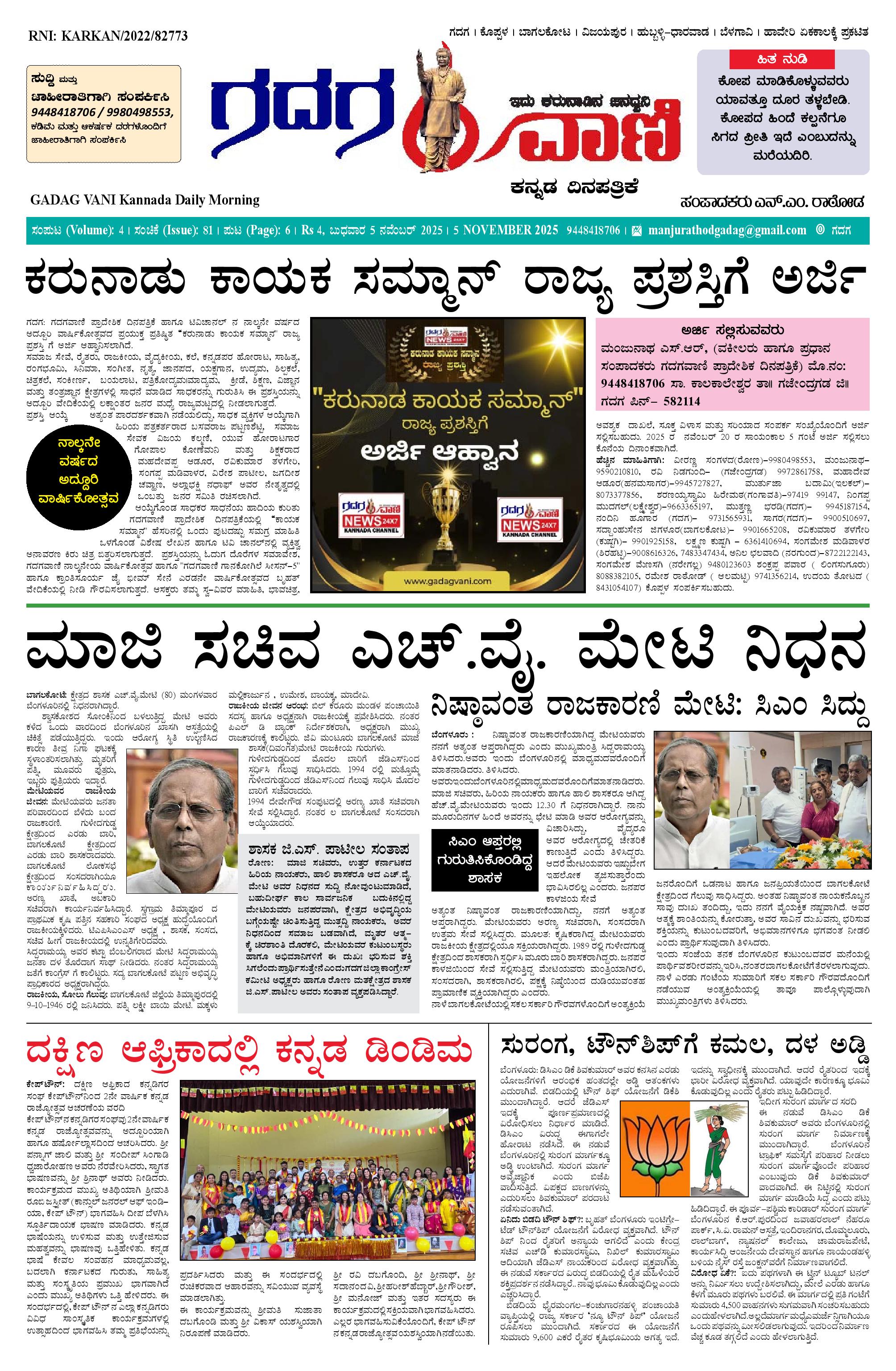ಗದಗ ವಾಣಿ 5 NOV 2025