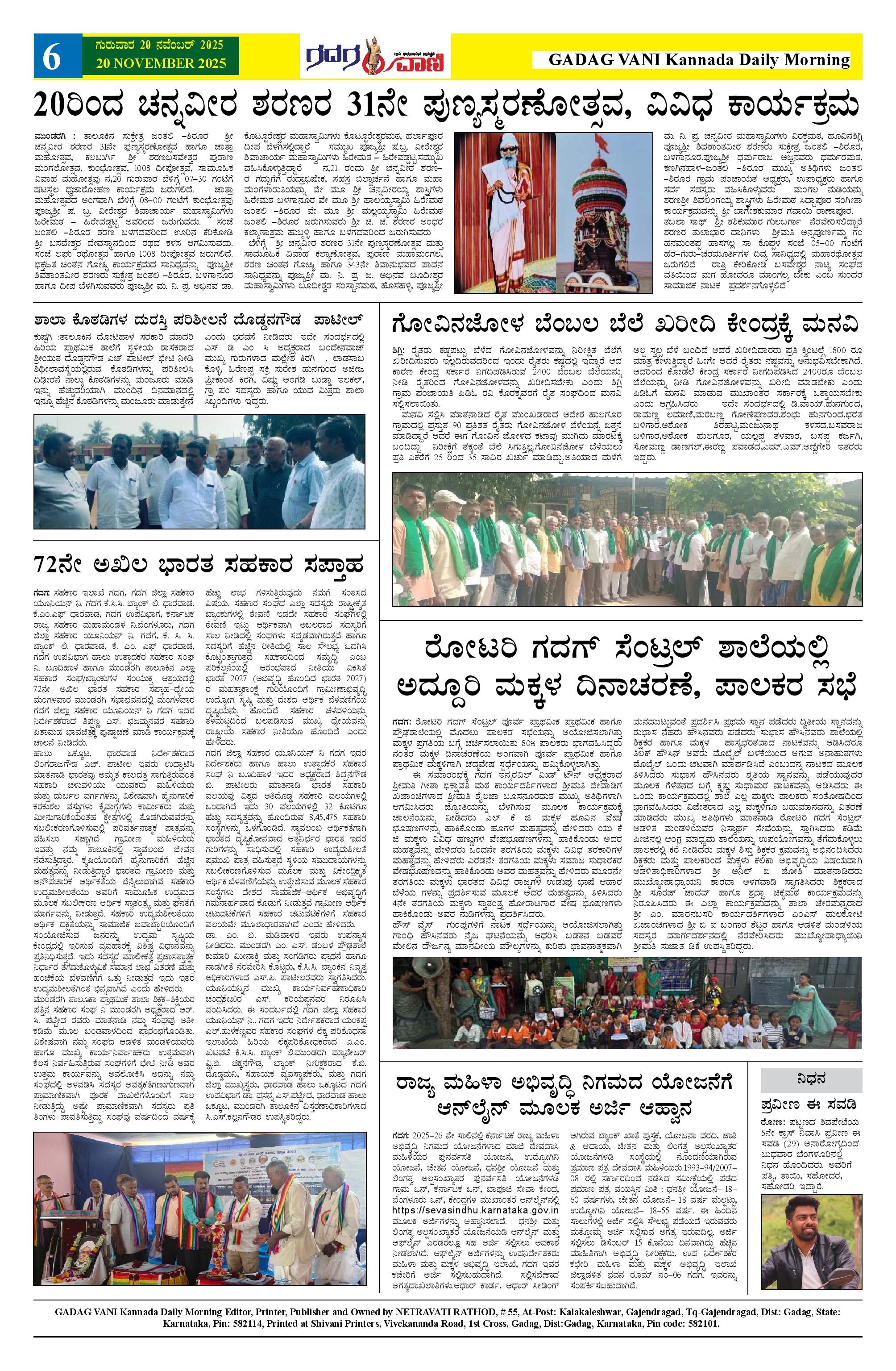 ಗದಗ ವಾಣಿ 20 NOV 2025 Page: 4 November 20, 2025 << First << 4 >> Last >> Page 1Page 2Page 3Page 4 × ಗದಗ ವಾಣಿ 20 NOV 2025 20.11.2025 GADAGVANI PG 04-page-00120.11.2025 GADAGVANI PG 04-page-00220.11.2025 GADAGVANI PG 04-page-00320.11.2025 GADAGVANI PG 04-page-004 << First << 4 >> Last >> 20.11.2025 GADAGVANI PG 04-page-00120.11.2025 GADAGVANI PG 04-page-00220.11.2025 GADAGVANI PG 04-page-00320.11.2025 GADAGVANI PG 04-page-004 20.11.2025 GADAGVANI PG 04-page-004