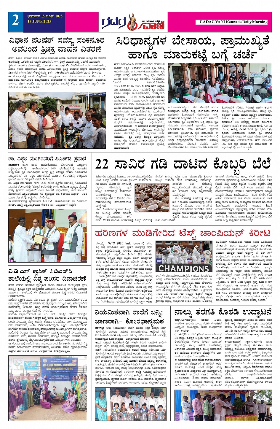 15 June 2025 ಗದಗವಾಣಿ Page: 2 June 15, 2025 << First << 2 >> Last >> Page 1Page 2Page 3Page 4 × 15 June 2025 ಗದಗವಾಣಿ 1215.06.2025 GADAGVANI PG 04-page-0034 << First << 2 >> Last >> 1215.06.2025 GADAGVANI PG 04-page-0034 2