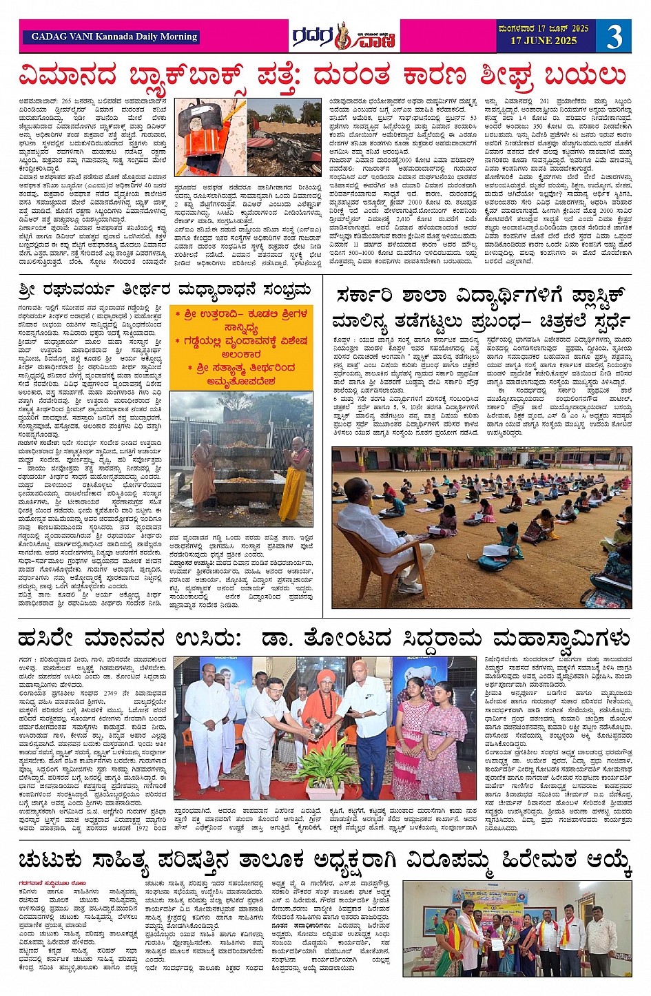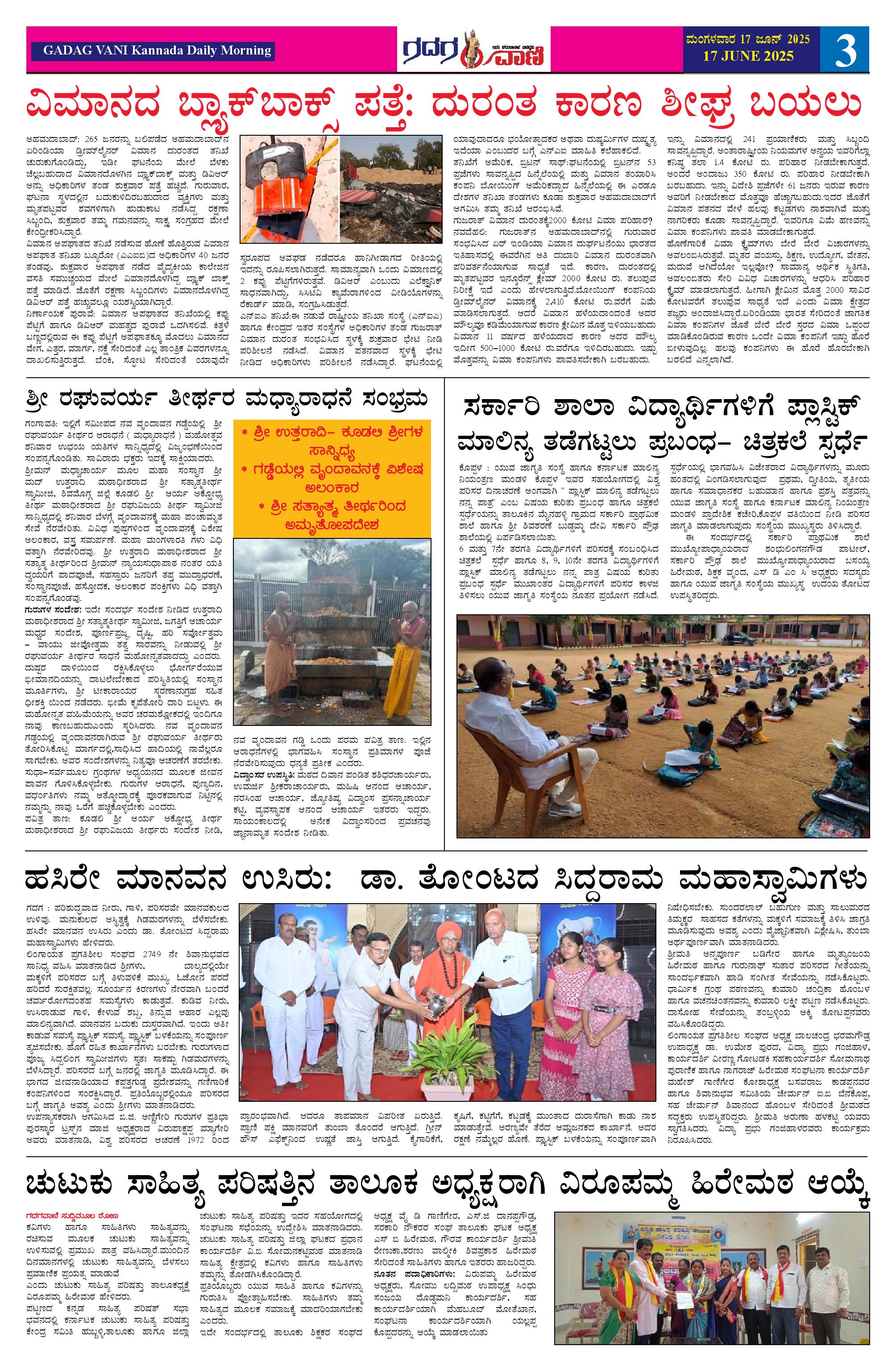 17 June 2025 ಗದಗವಾಣಿ Page: 3 June 17, 2025 << First << 3 >> Last >> Page 1Page 2Page 3Page 4 × 17 June 2025 ಗದಗವಾಣಿ 12317.06.2025 GADAGVANI PG 04-page-004 << First << 3 >> Last >> 12317.06.2025 GADAGVANI PG 04-page-004 3