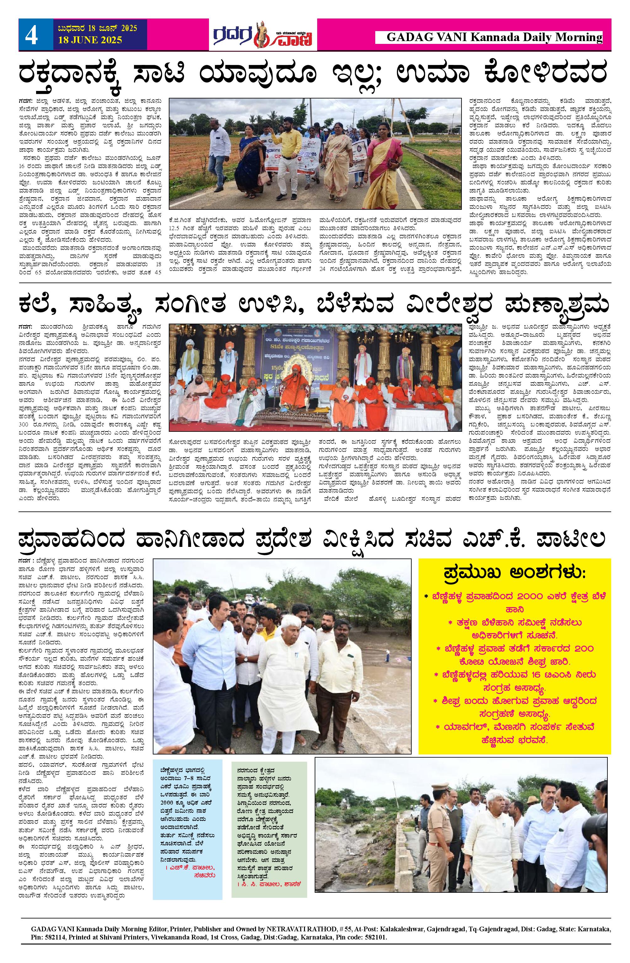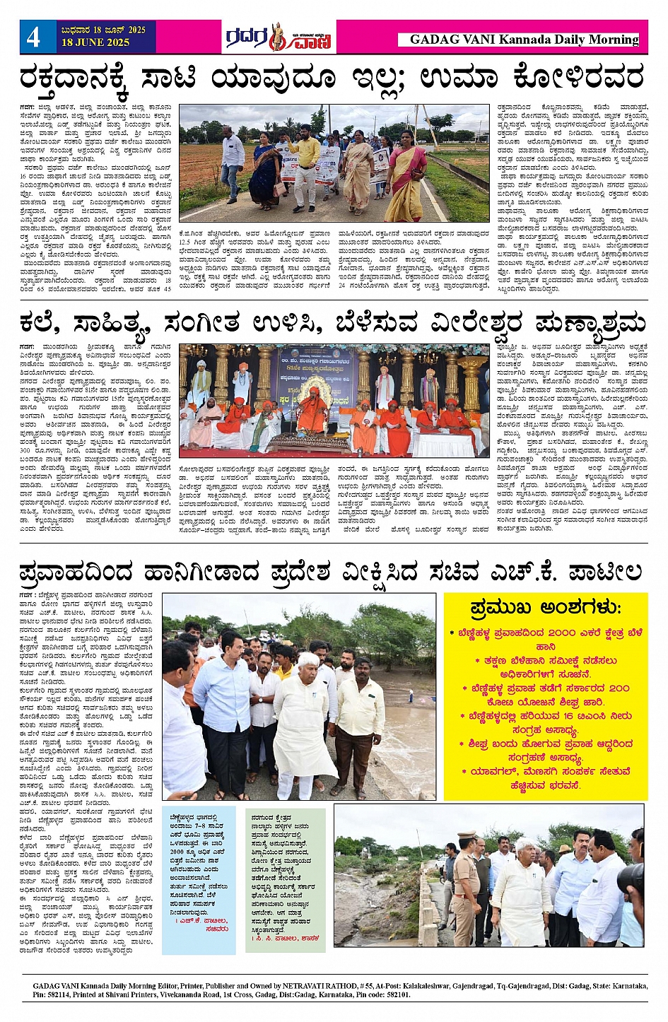 18 June 2025 ಗದಗವಾಣಿ Page: 4 June 18, 2025 << First << 4 >> Last >> Page 1Page 2Page 3Page 4 × 18 June 2025 ಗದಗವಾಣಿ 1234 << First << 4 >> Last >> 1234 4