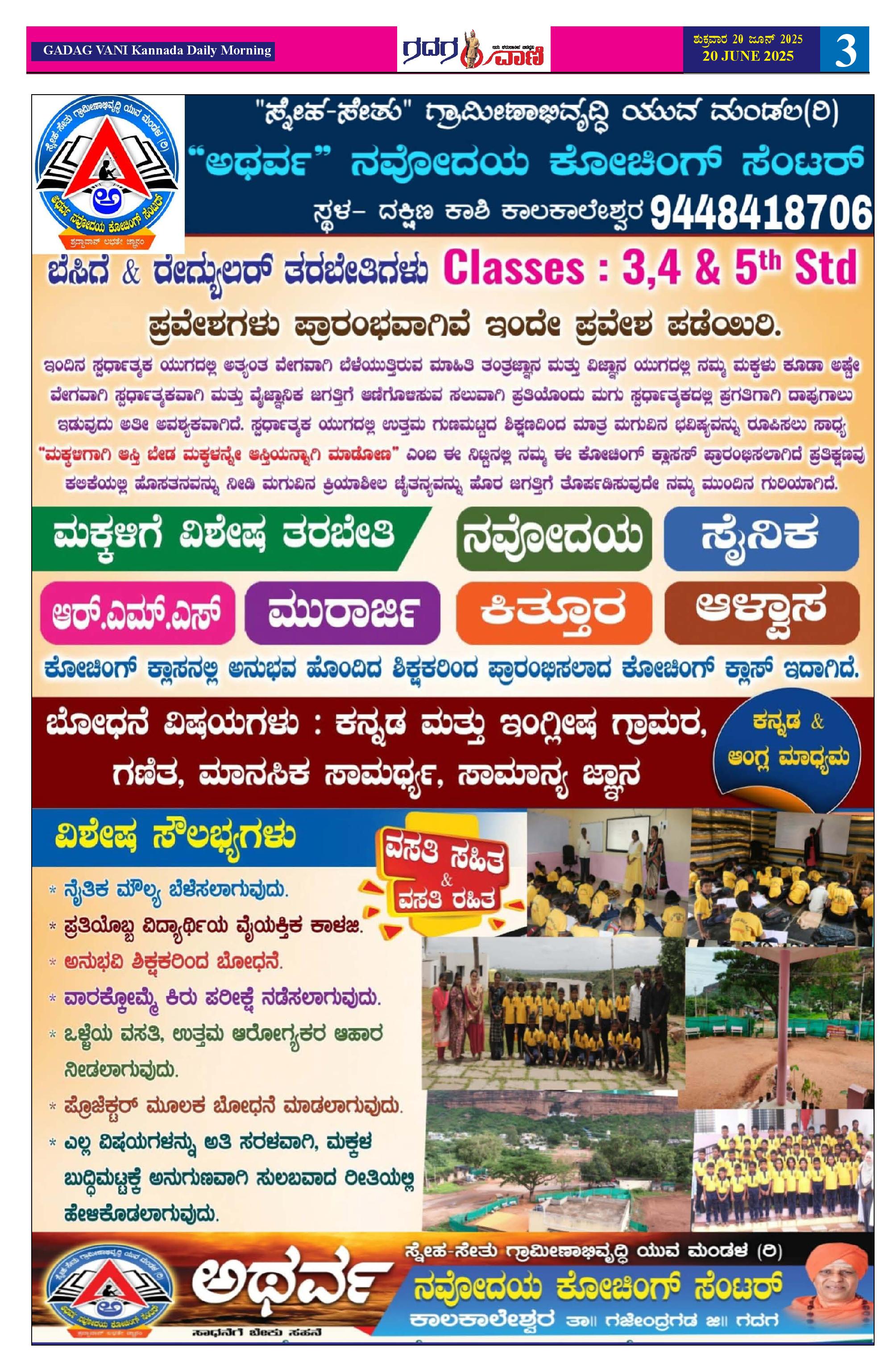 20 June 2025 ಗದಗವಾಣಿ Page: 3 June 20, 2025 << First << 3 >> Last >> Page 1Page 2Page 3Page 4 × 20 June 2025 ಗದಗವಾಣಿ 1220.06. 2025 GADAGVANI PG 04-page-0034 << First << 3 >> Last >> 1220.06. 2025 GADAGVANI PG 04-page-0034 20.06. 2025 GADAGVANI PG 04-page-003