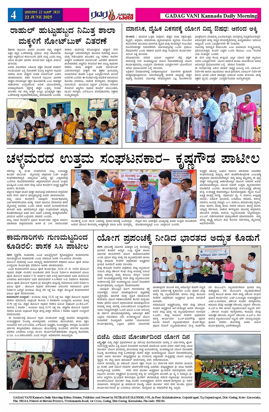 22 June 2025 ಗದಗವಾಣಿ Page: 4 June 22, 2025 << First << 4 >> Last >> Page 1Page 2Page 3Page 4 × 22 June 2025 ಗದಗವಾಣಿ 1222.06. 2025 GADAGVANI PG 04-page-0033 << First << 4 >> Last >> 1222.06. 2025 GADAGVANI PG 04-page-0033 3