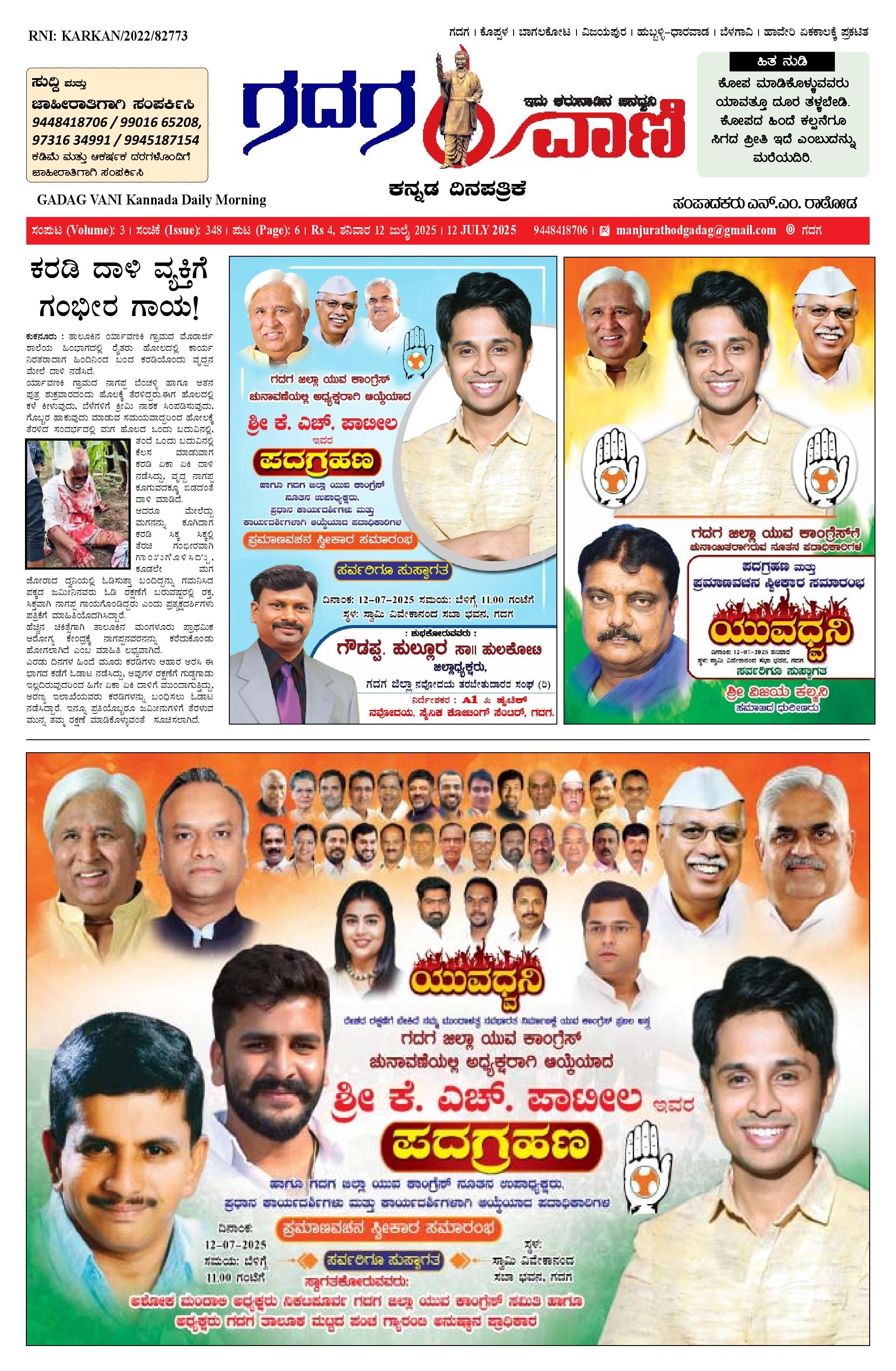 12 July 2025 ಗದಗವಾಣಿ July 12, 2025 << First << 1 >> Last >> Page 1Page 2Page 3Page 4Page 5Page 6 × 12 July 2025 ಗದಗವಾಣಿ 1234512.07.2025 GADAGVANI PG 06 NEW-page-006 << First << 1 >> Last >> 1234512.07.2025 GADAGVANI PG 06 NEW-page-006 1