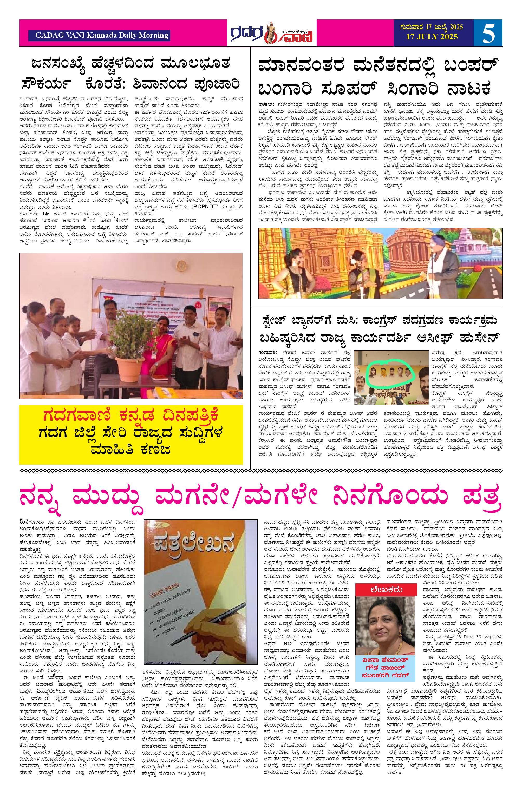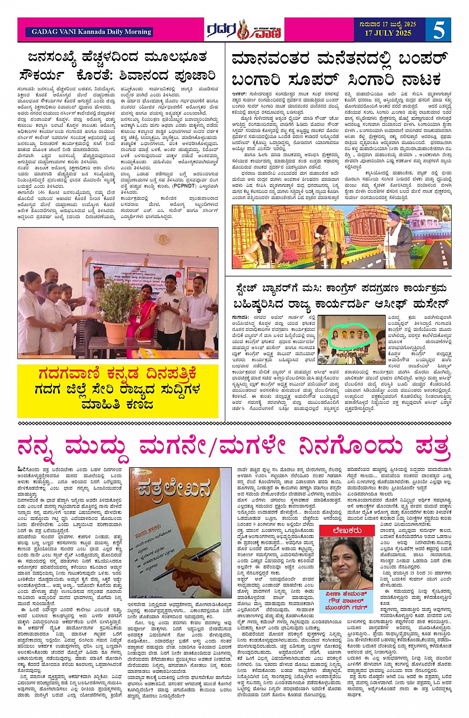17 July 2025 ಗದಗವಾಣಿ Page: 5 July 17, 2025 << First << 5 >> Last >> Page 1Page 2Page 3Page 4Page 5Page 6 × 17 July 2025 ಗದಗವಾಣಿ 1234517.07.2025 GADAGVANI PG 06 NEW-page-006 << First << 5 >> Last >> 1234517.07.2025 GADAGVANI PG 06 NEW-page-006 5