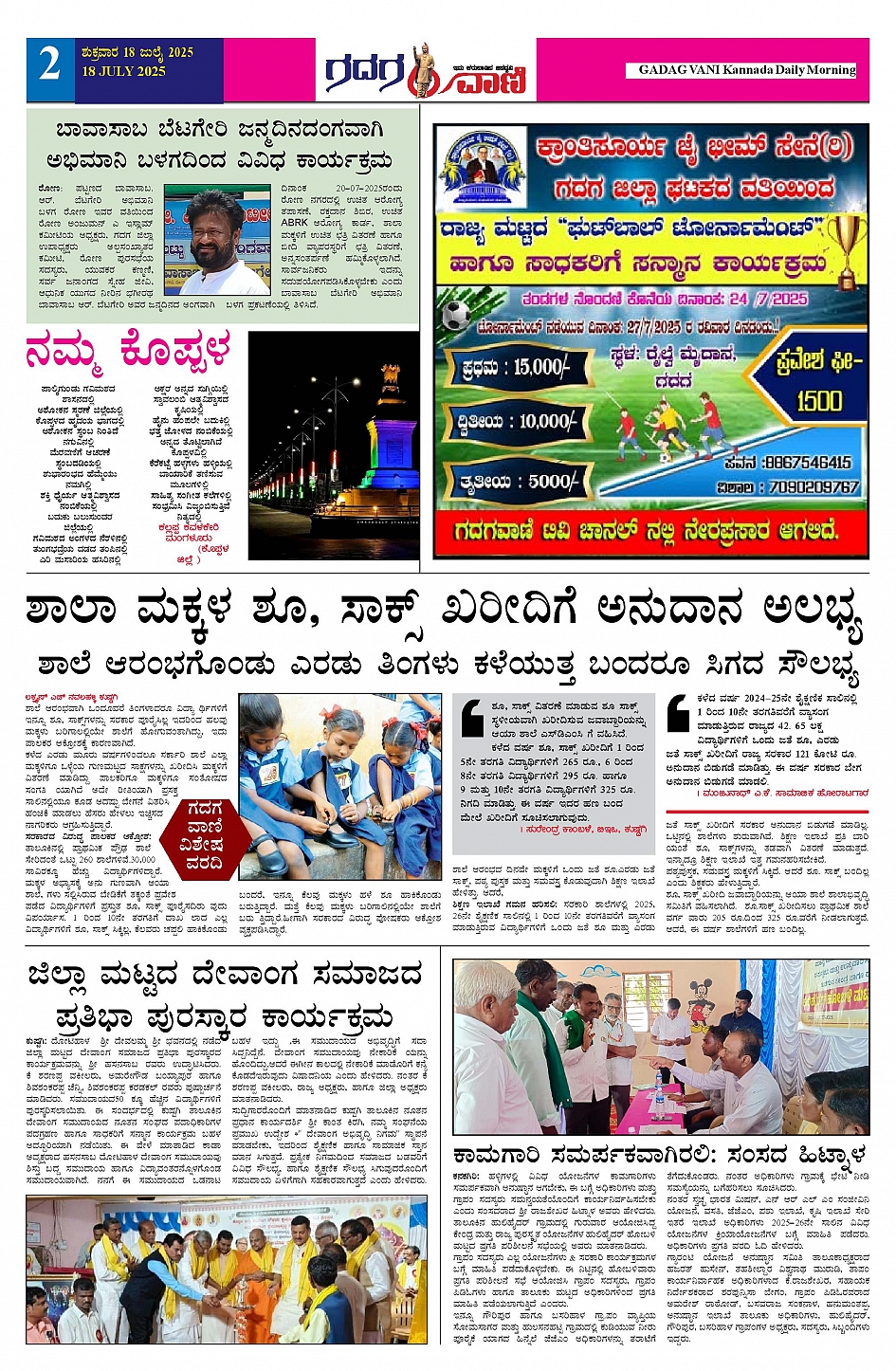 18 July 2025 ಗದಗವಾಣಿ Page: 2 July 18, 2025 << First << 2 >> Last >> Page 1Page 2Page 3Page 4Page 5Page 6 × 18 July 2025 ಗದಗವಾಣಿ 1234518.07.2025 GADAGVANI PG 06 NEW-page-006 << First << 2 >> Last >> 1234518.07.2025 GADAGVANI PG 06 NEW-page-006 2