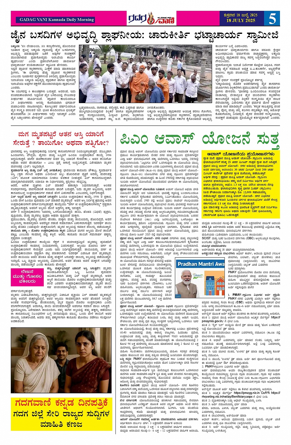 18 July 2025 ಗದಗವಾಣಿ Page: 5 July 18, 2025 << First << 5 >> Last >> Page 1Page 2Page 3Page 4Page 5Page 6 × 18 July 2025 ಗದಗವಾಣಿ 1234518.07.2025 GADAGVANI PG 06 NEW-page-006 << First << 5 >> Last >> 1234518.07.2025 GADAGVANI PG 06 NEW-page-006 5