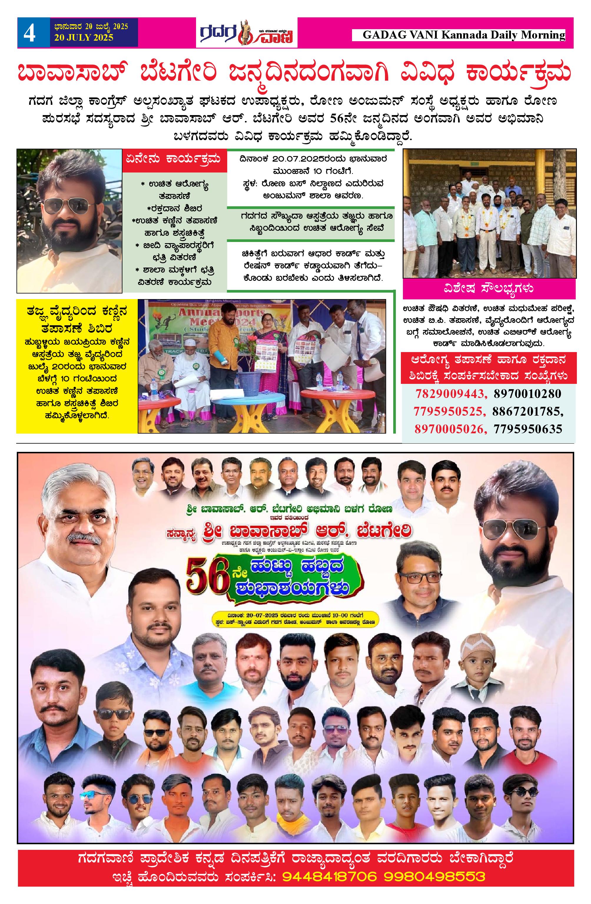 20 July 2025 ಗದಗವಾಣಿ Page: 4 July 20, 2025 << First << 4 >> Last >> Page 1Page 2Page 3Page 4Page 5Page 6 × 20 July 2025 ಗದಗವಾಣಿ page-1page-2page-3page-4page-5page-6 << First << 4 >> Last >> page-1page-2page-3page-4page-5page-6 page-4