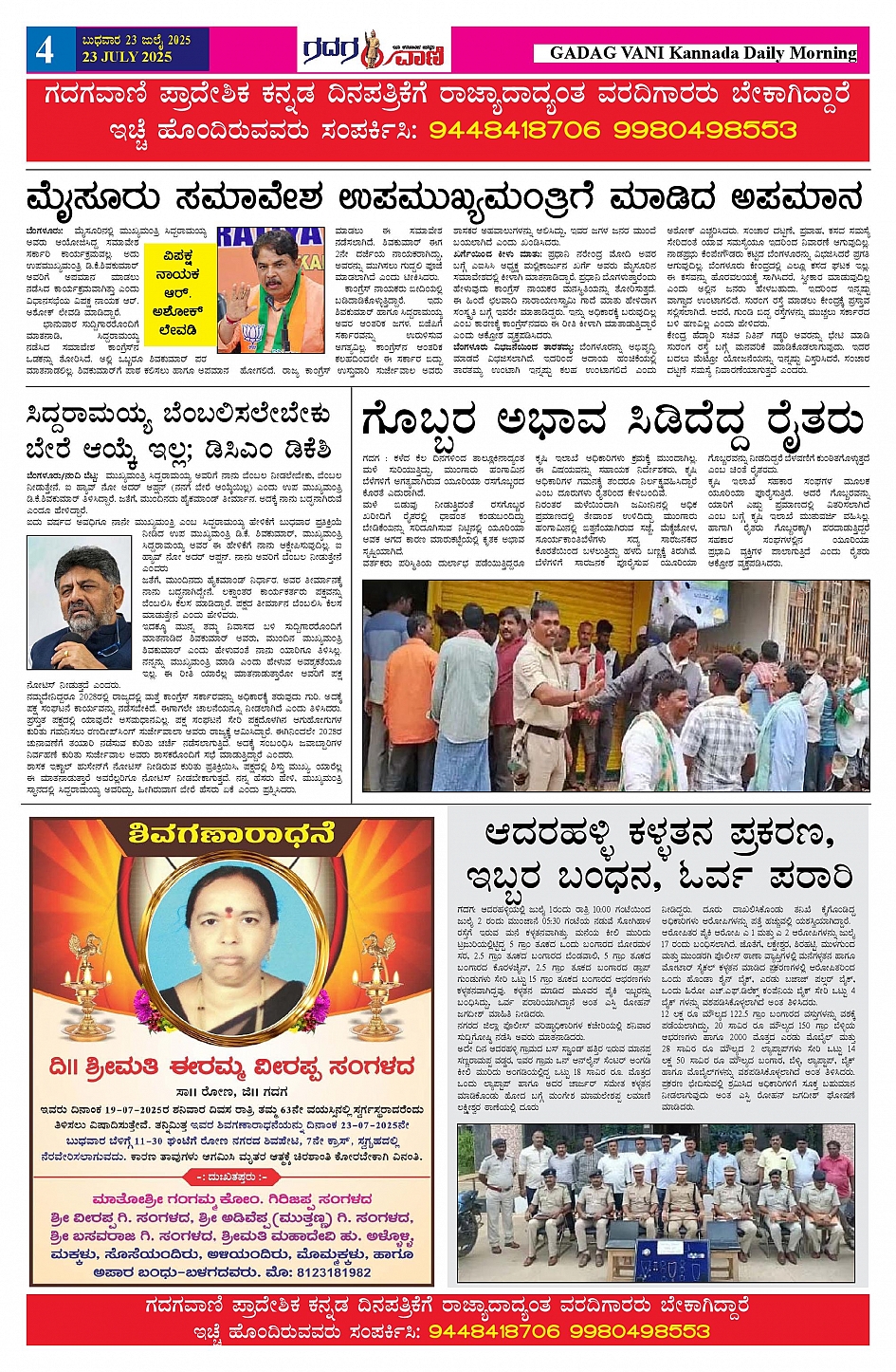 23 July 2025 ಗದಗವಾಣಿ Page: 4 July 23, 2025 << First << 4 >> Last >> Page 1Page 2Page 3Page 4Page 5Page 6 × 23 July 2025 ಗದಗವಾಣಿ 1234523.07.2025 GADAGVANI PG 06 NEW-page-006 << First << 4 >> Last >> 1234523.07.2025 GADAGVANI PG 06 NEW-page-006 4