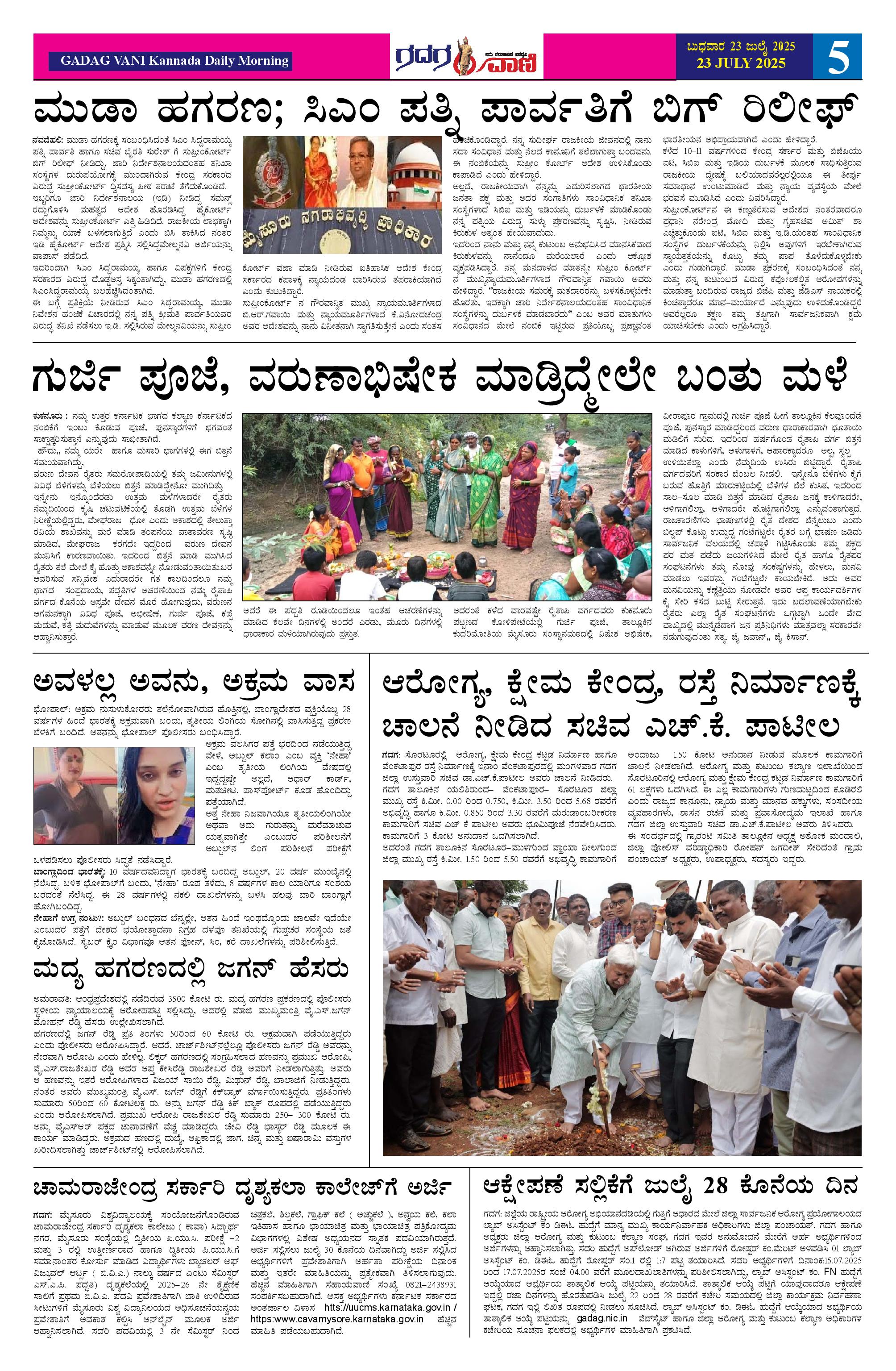 23 July 2025 ಗದಗವಾಣಿ Page: 5 July 23, 2025 << First << 5 >> Last >> Page 1Page 2Page 3Page 4Page 5Page 6 × 23 July 2025 ಗದಗವಾಣಿ 1234523.07.2025 GADAGVANI PG 06 NEW-page-006 << First << 5 >> Last >> 1234523.07.2025 GADAGVANI PG 06 NEW-page-006 5