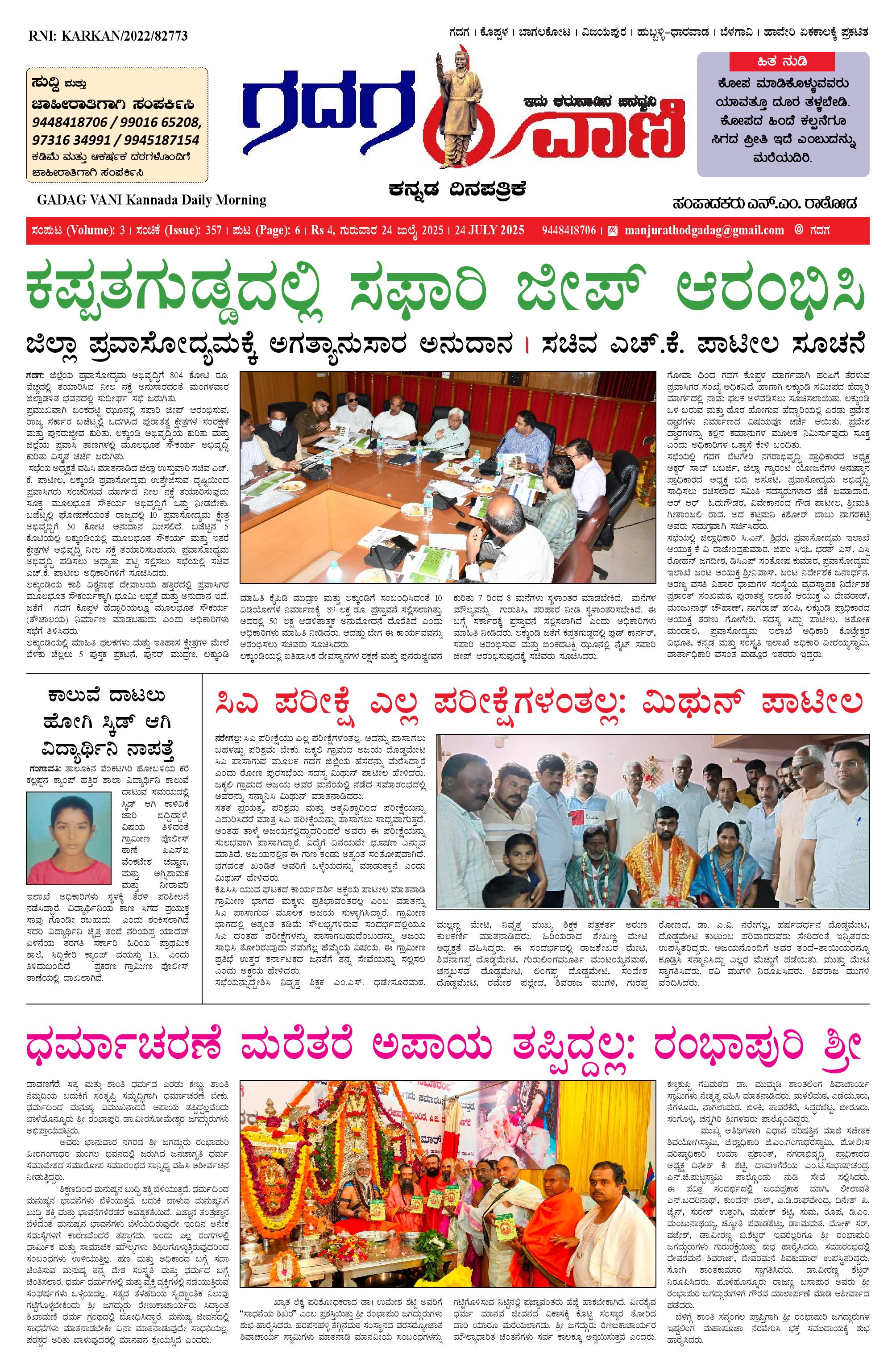 24 July 2025 ಗದಗವಾಣಿ July 24, 2025 << First << 1 >> Last >> Page 1Page 2Page 3Page 4Page 5Page 6 × 24 July 2025 ಗದಗವಾಣಿ 1234524.07.2025 GADAGVANI PG 06 NEW-page-006 << First << 1 >> Last >> 1234524.07.2025 GADAGVANI PG 06 NEW-page-006 1