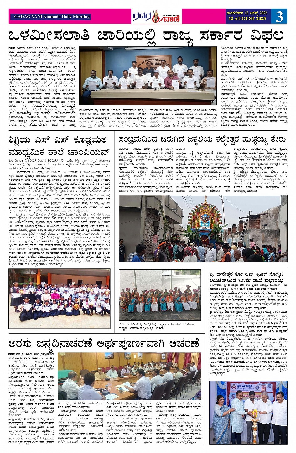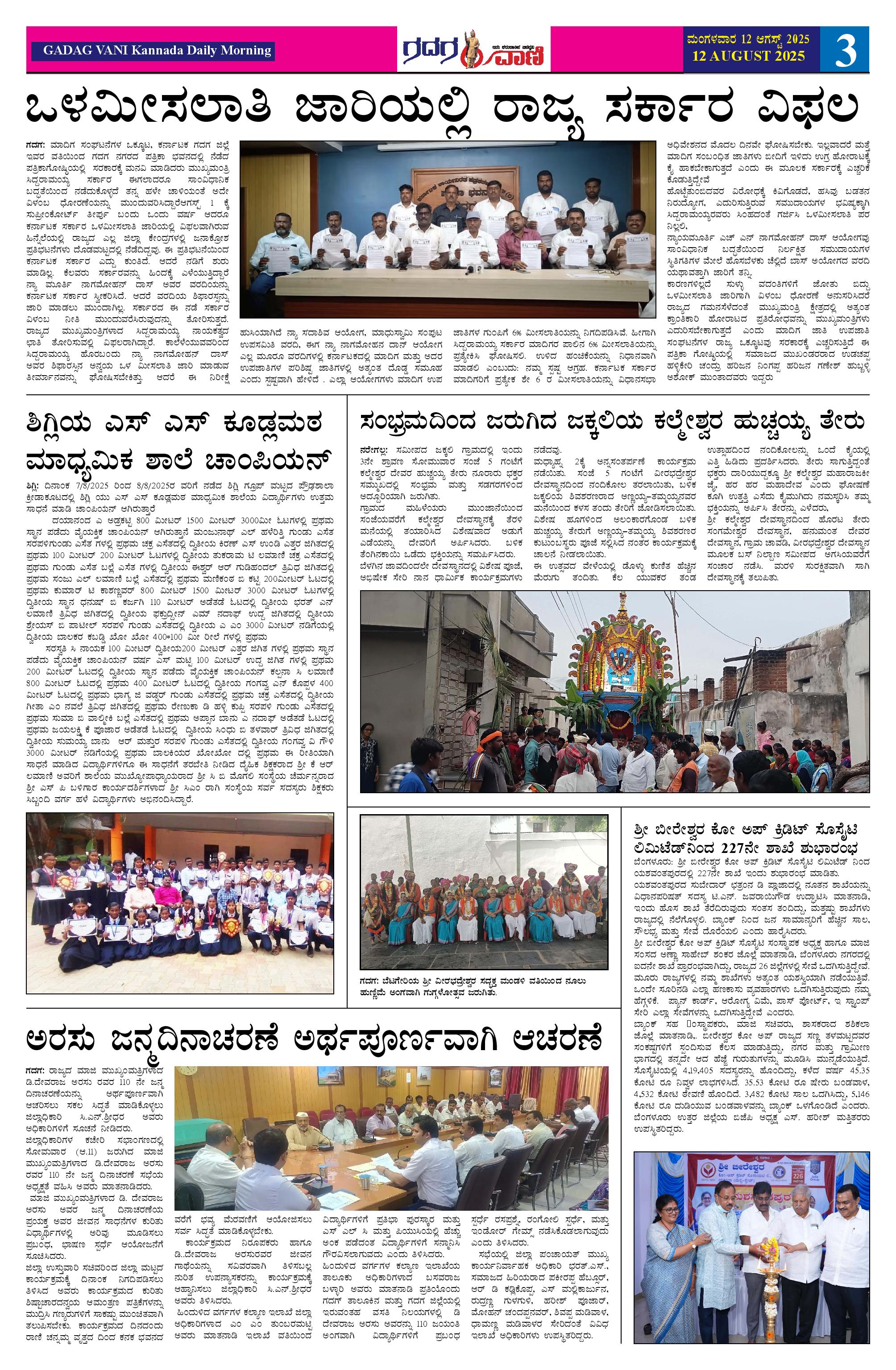12 AUG 2025 ಗದಗವಾಣಿ Page: 3 August 12, 2025 << First << 3 >> Last >> Page 1Page 2Page 3Page 4Page 5Page 6 × 12 AUG 2025 ಗದಗವಾಣಿ 1234512.08. 2025 GADAGVANI PG 06 NEW-page-006 << First << 3 >> Last >> 1234512.08. 2025 GADAGVANI PG 06 NEW-page-006 3