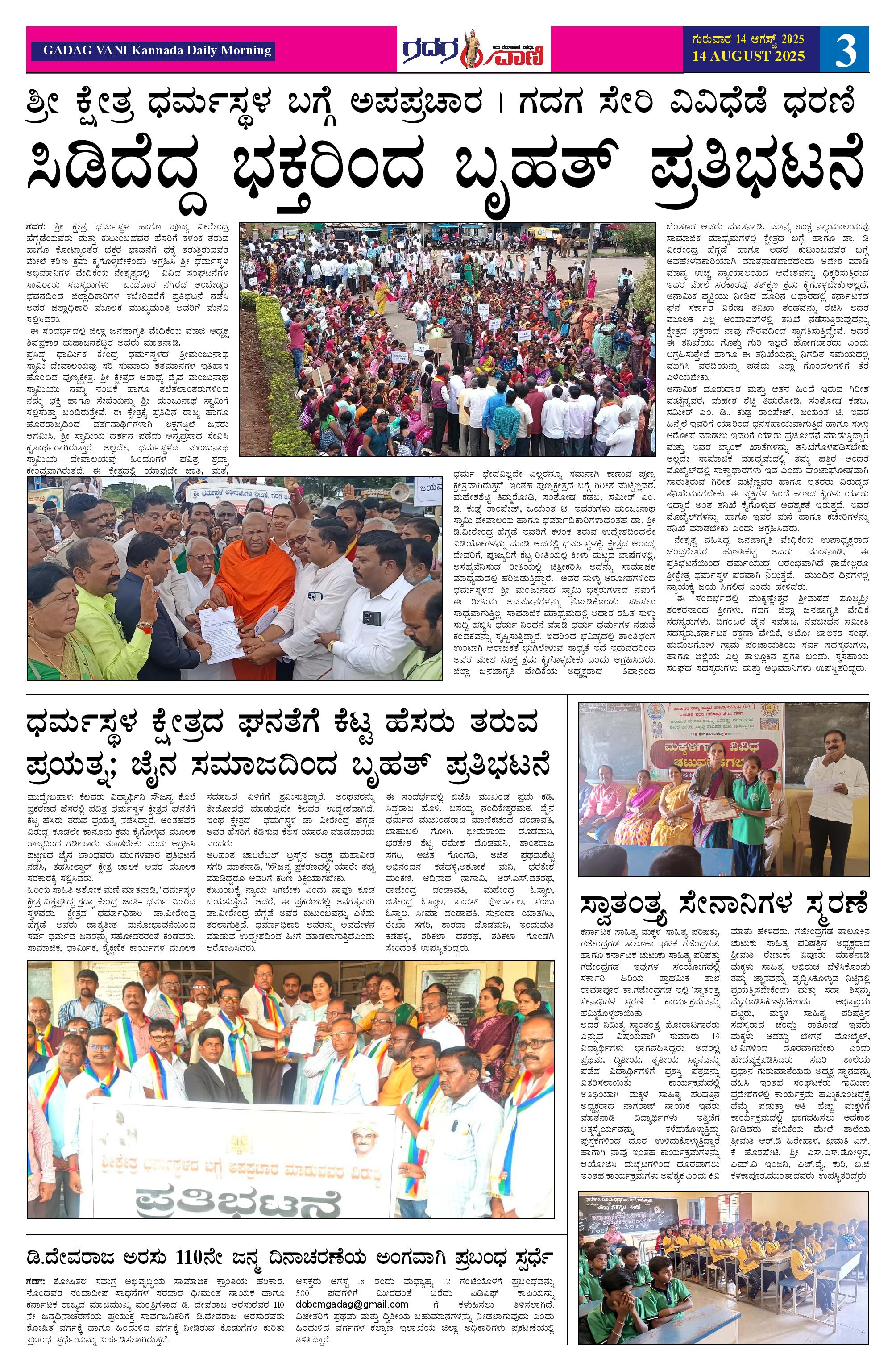 14 AUG 2025 ಗದಗವಾಣಿ Page: 3 August 14, 2025 << First << 3 >> Last >> Page 1Page 2Page 3Page 4Page 5Page 6 × 14 AUG 2025 ಗದಗವಾಣಿ 1234514.08.2025 GADAGVANI PG 06 NEW-page-006 << First << 3 >> Last >> 1234514.08.2025 GADAGVANI PG 06 NEW-page-006 3