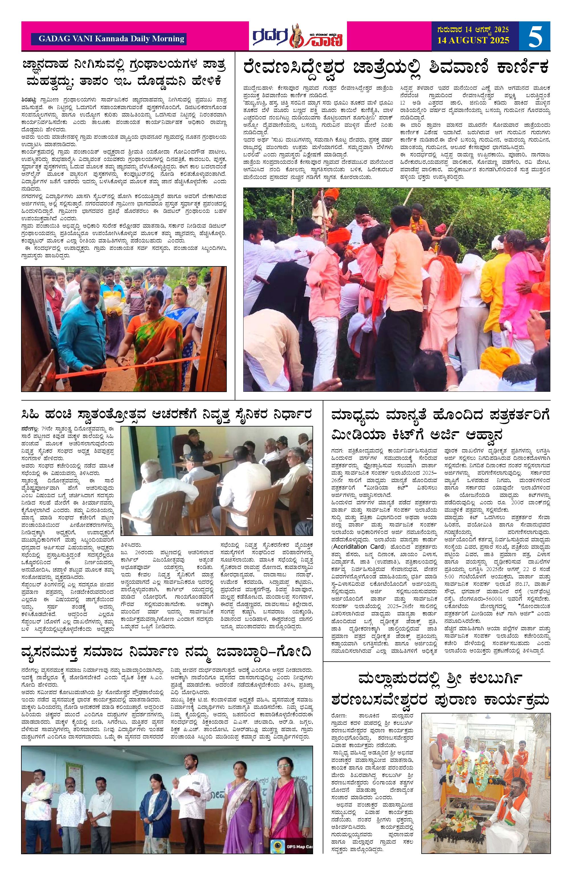 14 AUG 2025 ಗದಗವಾಣಿ Page: 5 August 14, 2025 << First << 5 >> Last >> Page 1Page 2Page 3Page 4Page 5Page 6 × 14 AUG 2025 ಗದಗವಾಣಿ 1234514.08.2025 GADAGVANI PG 06 NEW-page-006 << First << 5 >> Last >> 1234514.08.2025 GADAGVANI PG 06 NEW-page-006 5