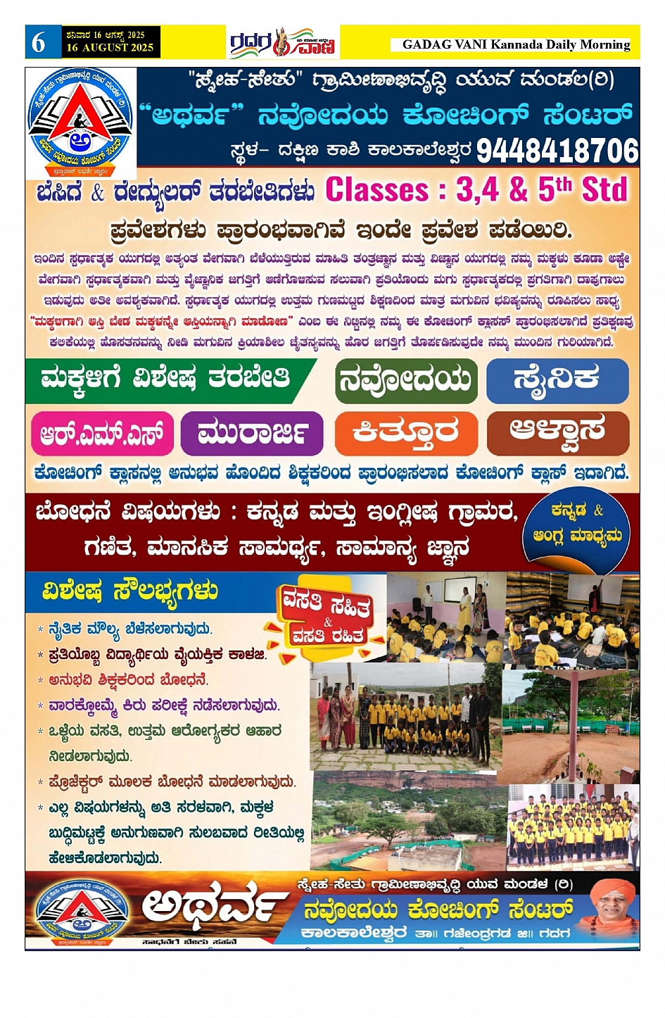 16 AUG 2025 ಗದಗವಾಣಿ Page: 6 August 16, 2025 << First << 6 >> Last >> Page 1Page 2Page 3Page 4Page 5Page 6 × 16 AUG 2025 ಗದಗವಾಣಿ page-1page-2page-3page-4page-5page-6 << First << 6 >> Last >> page-1page-2page-3page-4page-5page-6 page-6