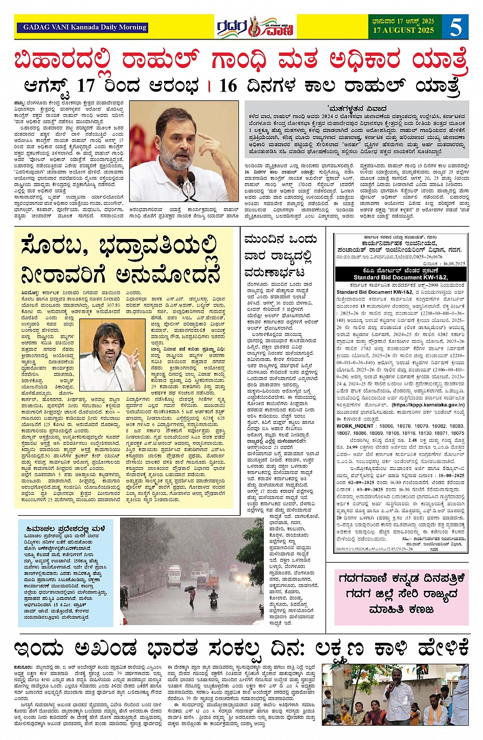 17 AUG 2025 ಗದಗವಾಣಿ Page: 3 August 17, 2025 << First << 3 >> Last >> Page 1Page 2Page 3Page 4 × 17 AUG 2025 ಗದಗವಾಣಿ page-1page-2page-3page-4 << First << 3 >> Last >> page-1page-2page-3page-4 page-3