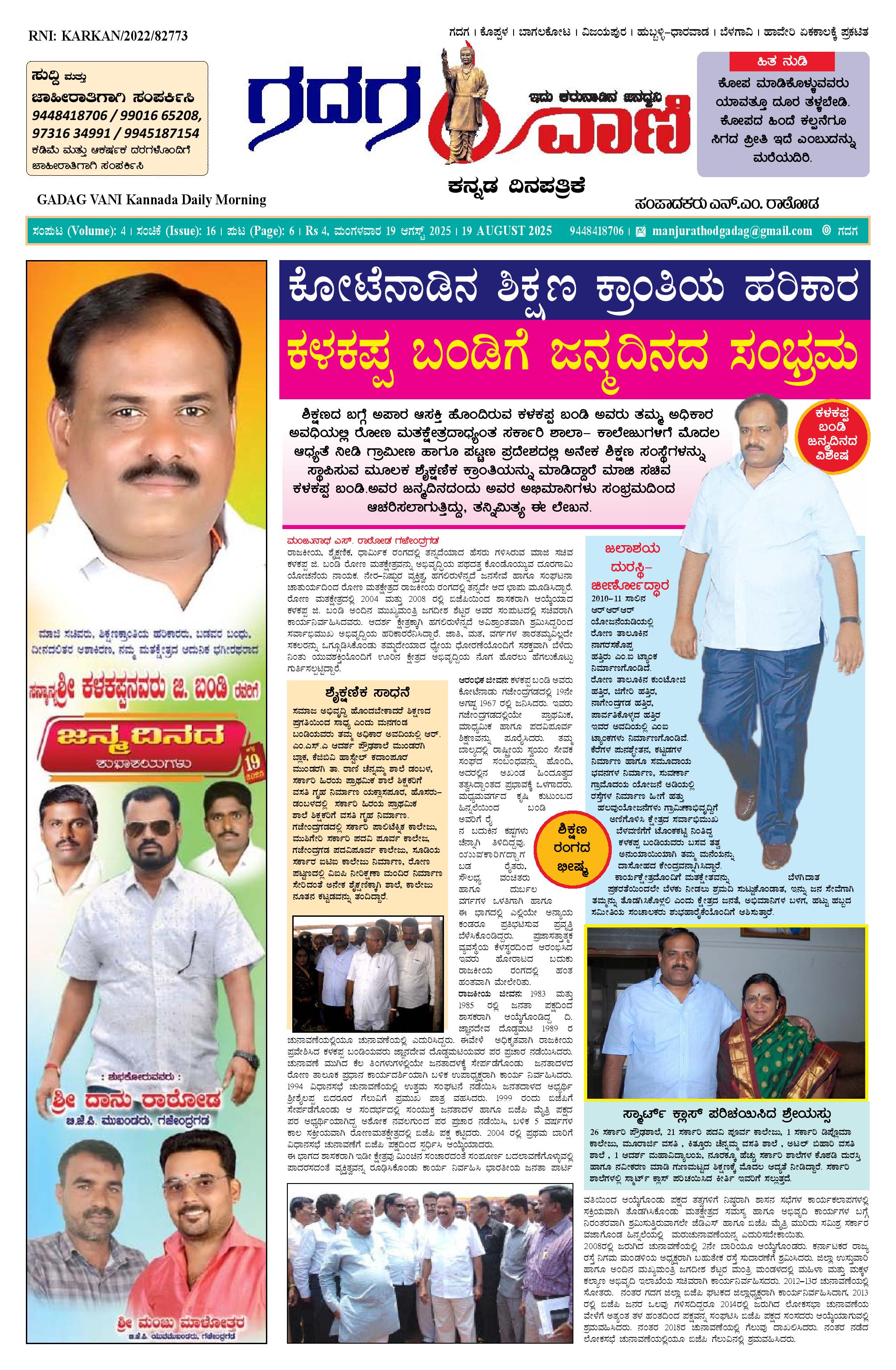 19 AUG 2025 ಗದಗವಾಣಿ August 19, 2025 << First << 1 >> Last >> Page 1Page 2Page 3Page 4Page 5Page 6 × 19 AUG 2025 ಗದಗವಾಣಿ 123456 << First << 1 >> Last >> 123456 1