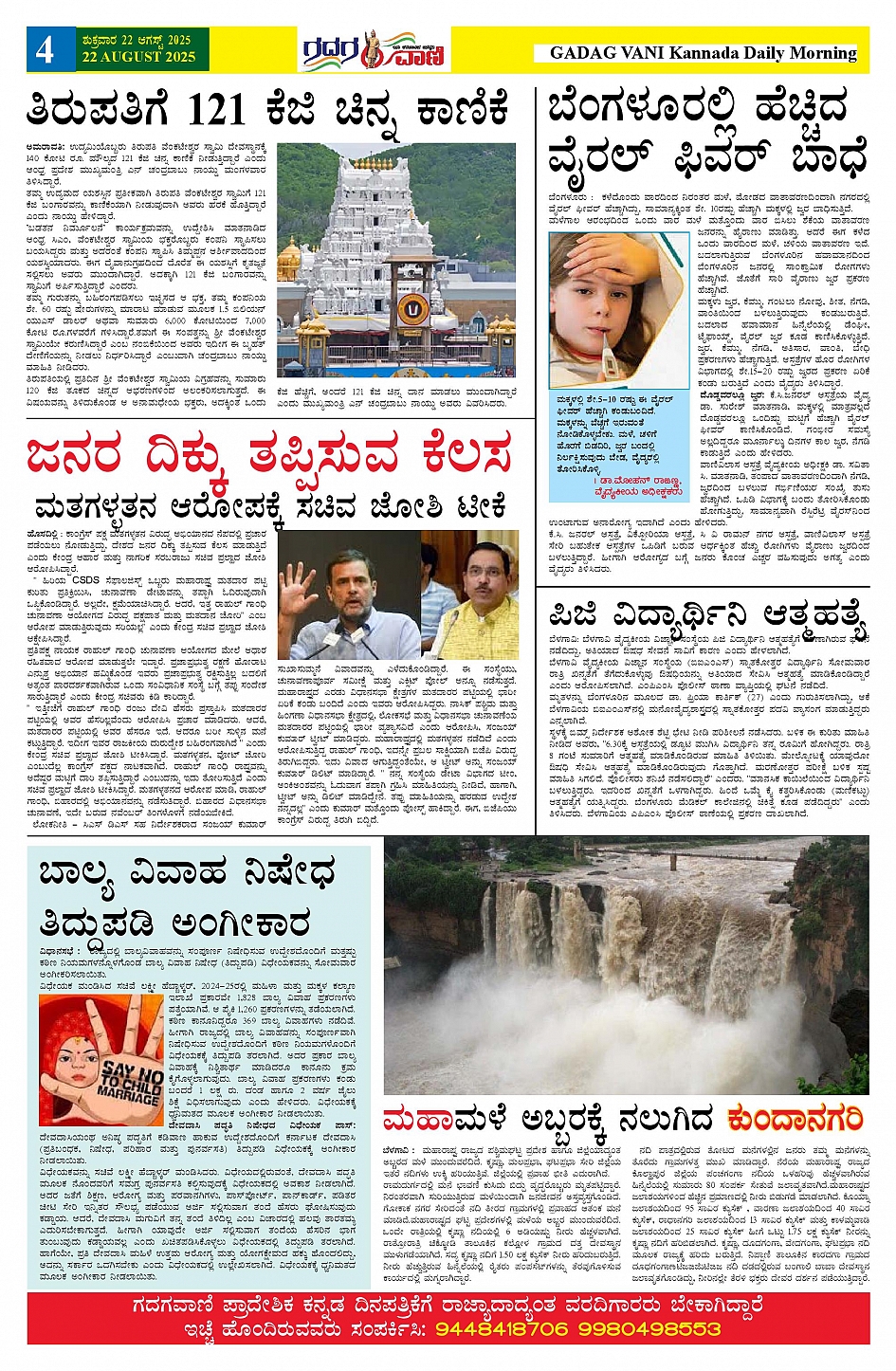 22 AUG 2025 ಗದಗವಾಣಿ Page: 4 August 22, 2025 << First << 4 >> Last >> Page 1Page 2Page 3Page 4Page 5Page 6 × 22 AUG 2025 ಗದಗವಾಣಿ page-1page-2page-3page-4page-5page-6 << First << 4 >> Last >> page-1page-2page-3page-4page-5page-6 page-4