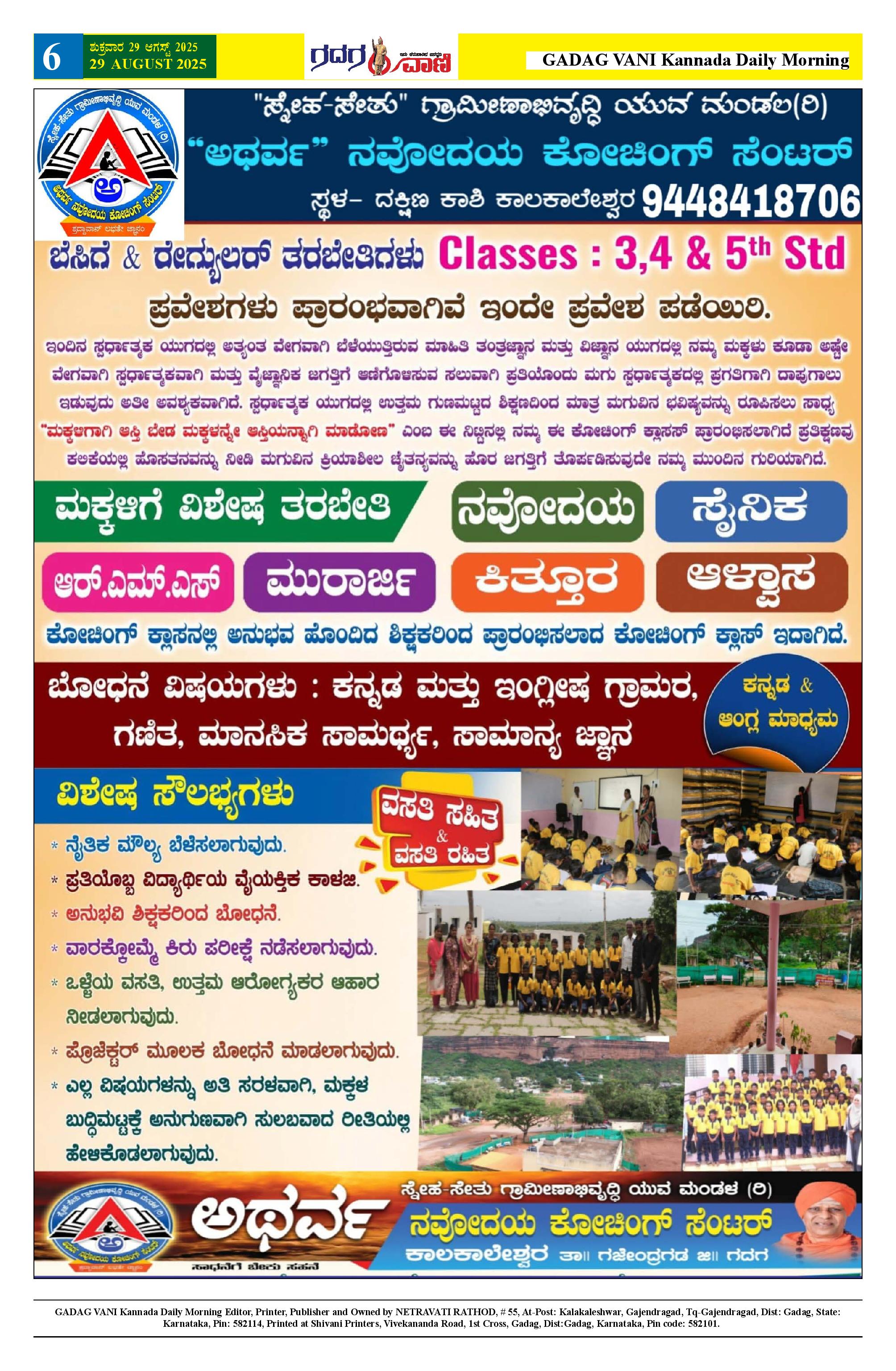 29 AUG 2025 ಗದಗವಾಣಿ Page: 6 August 29, 2025 << First << 6 >> Last >> Page 1Page 2Page 3Page 4Page 5Page 6 × 29 AUG 2025 ಗದಗವಾಣಿ 1234529.08.2025 GADAGVANI PG 06 NEW-page-006 << First << 6 >> Last >> 1234529.08.2025 GADAGVANI PG 06 NEW-page-006 29.08.2025 GADAGVANI PG 06 NEW-page-006