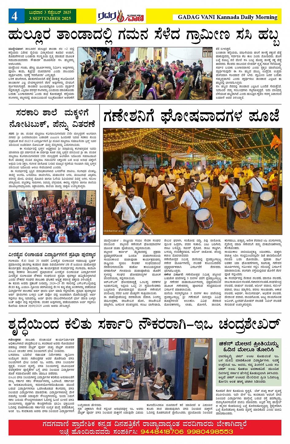 ಗದಗ ವಾಣಿ 03 SEPT 2025 Page: 4 September 03, 2025 << First << 4 >> Last >> Page 1Page 2Page 3Page 4Page 5Page 6 × ಗದಗ ವಾಣಿ 03 SEPT 2025 1234503.09.2025 GADAGVANI PG 06 NEW-page-006 << First << 4 >> Last >> 1234503.09.2025 GADAGVANI PG 06 NEW-page-006 4