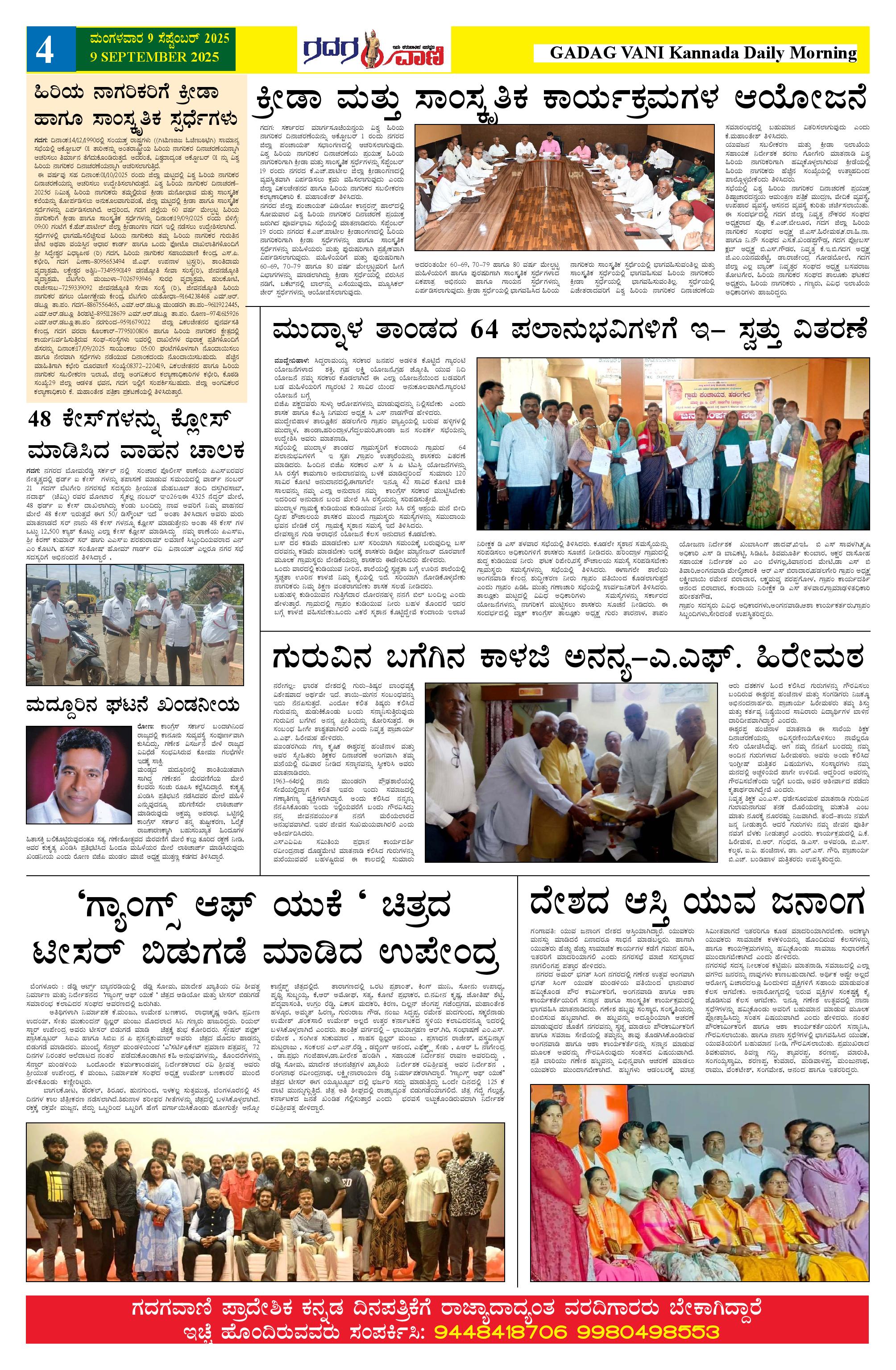 ಗದಗ ವಾಣಿ 09 SEPT 2025 Page: 4 September 09, 2025 << First << 4 >> Last >> Page 1Page 2Page 3Page 4Page 5Page 6 × ಗದಗ ವಾಣಿ 09 SEPT 2025 123456 << First << 4 >> Last >> 123456 4