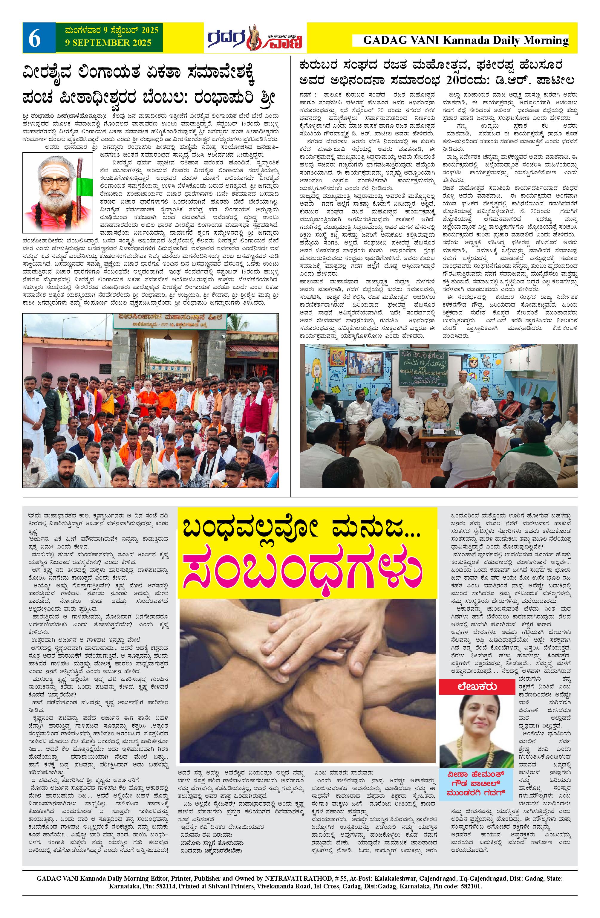 ಗದಗ ವಾಣಿ 09 SEPT 2025 Page: 6 September 09, 2025 << First << 6 >> Last >> Page 1Page 2Page 3Page 4Page 5Page 6 × ಗದಗ ವಾಣಿ 09 SEPT 2025 123456 << First << 6 >> Last >> 123456 6