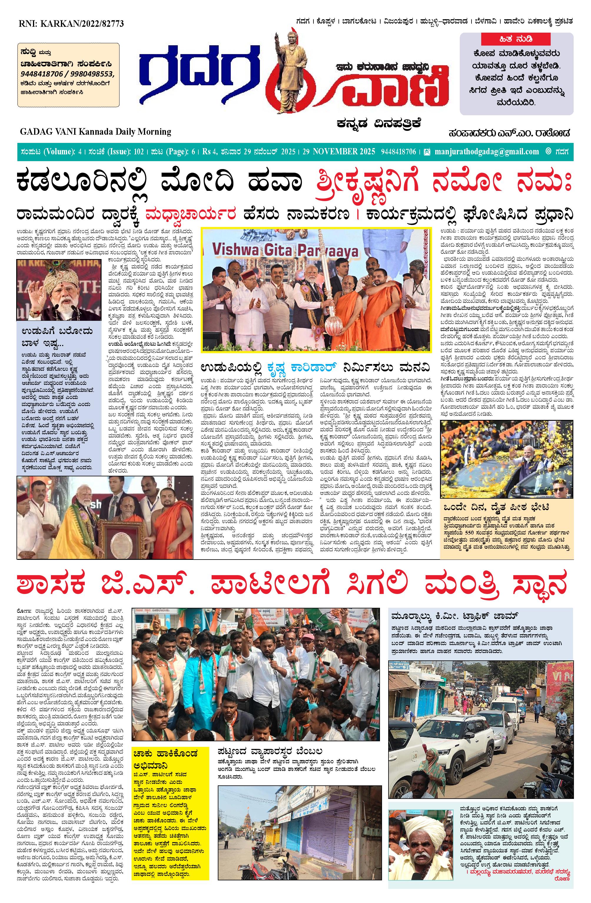 ಗದಗ ವಾಣಿ 29 NOV 2025