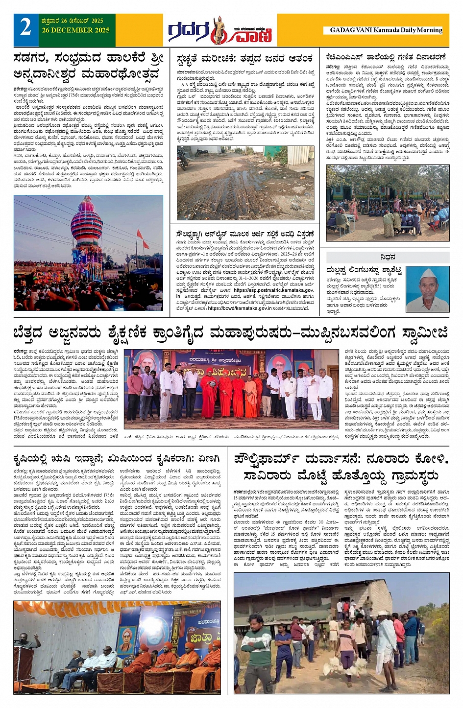 ಗದಗ ವಾಣಿ 26 Dec 2025 Page: 2 December 26, 2025 << First << 2 >> Last >> Page 1Page 2Page 3Page 4 × ಗದಗ ವಾಣಿ 26 Dec 2025 26.12.2025 GADAGVANI PG 04-page-00126.12.2025 GADAGVANI PG 04-page-00226.12.2025 GADAGVANI PG 04-page-00326.12.2025 GADAGVANI PG 04-page-004 << First << 2 >> Last >> 26.12.2025 GADAGVANI PG 04-page-00126.12.2025 GADAGVANI PG 04-page-00226.12.2025 GADAGVANI PG 04-page-00326.12.2025 GADAGVANI PG 04-page-004 26.12.2025 GADAGVANI PG 04-page-002