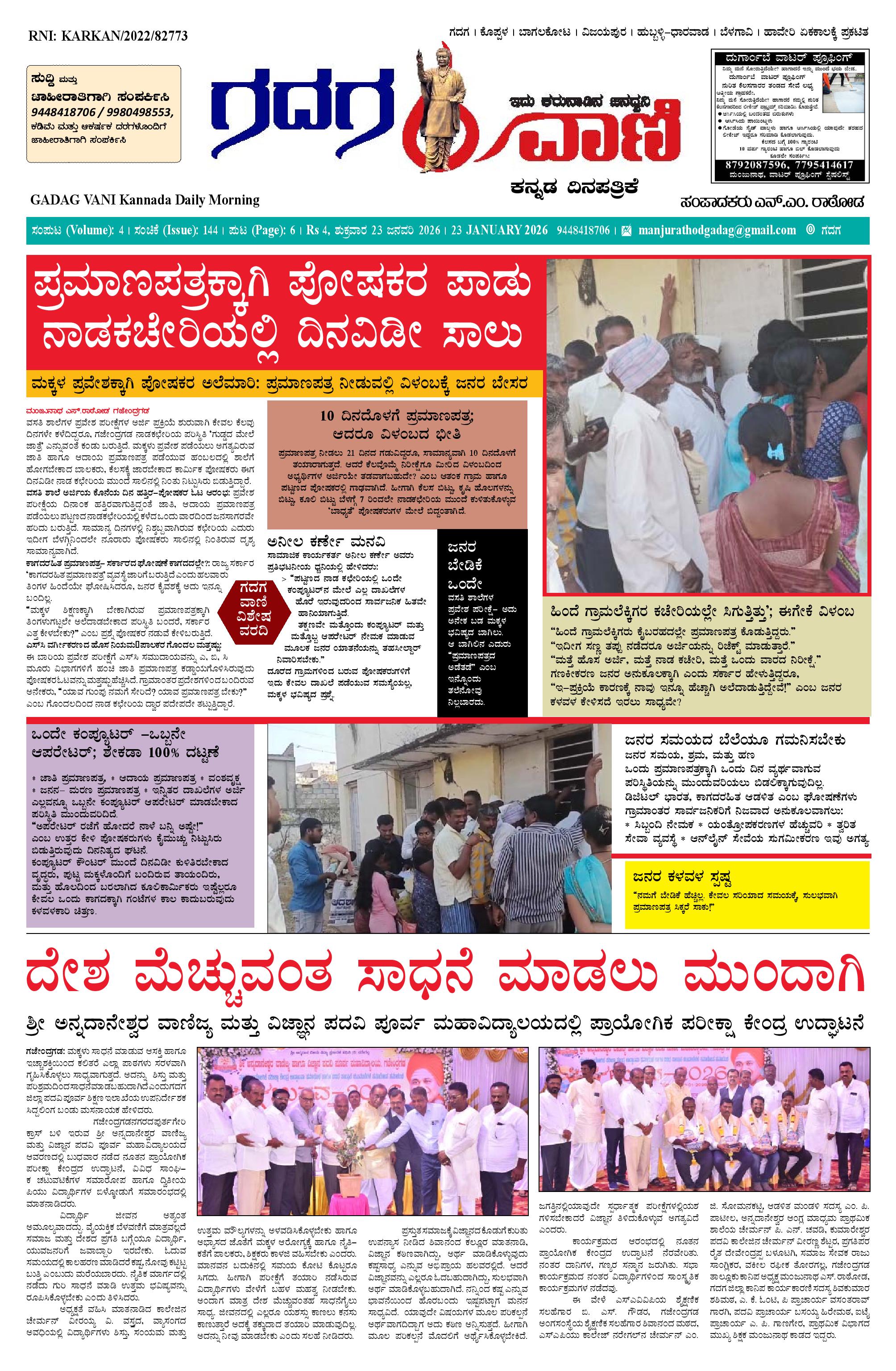 ಗದಗ ವಾಣಿ 23 Jan 2026