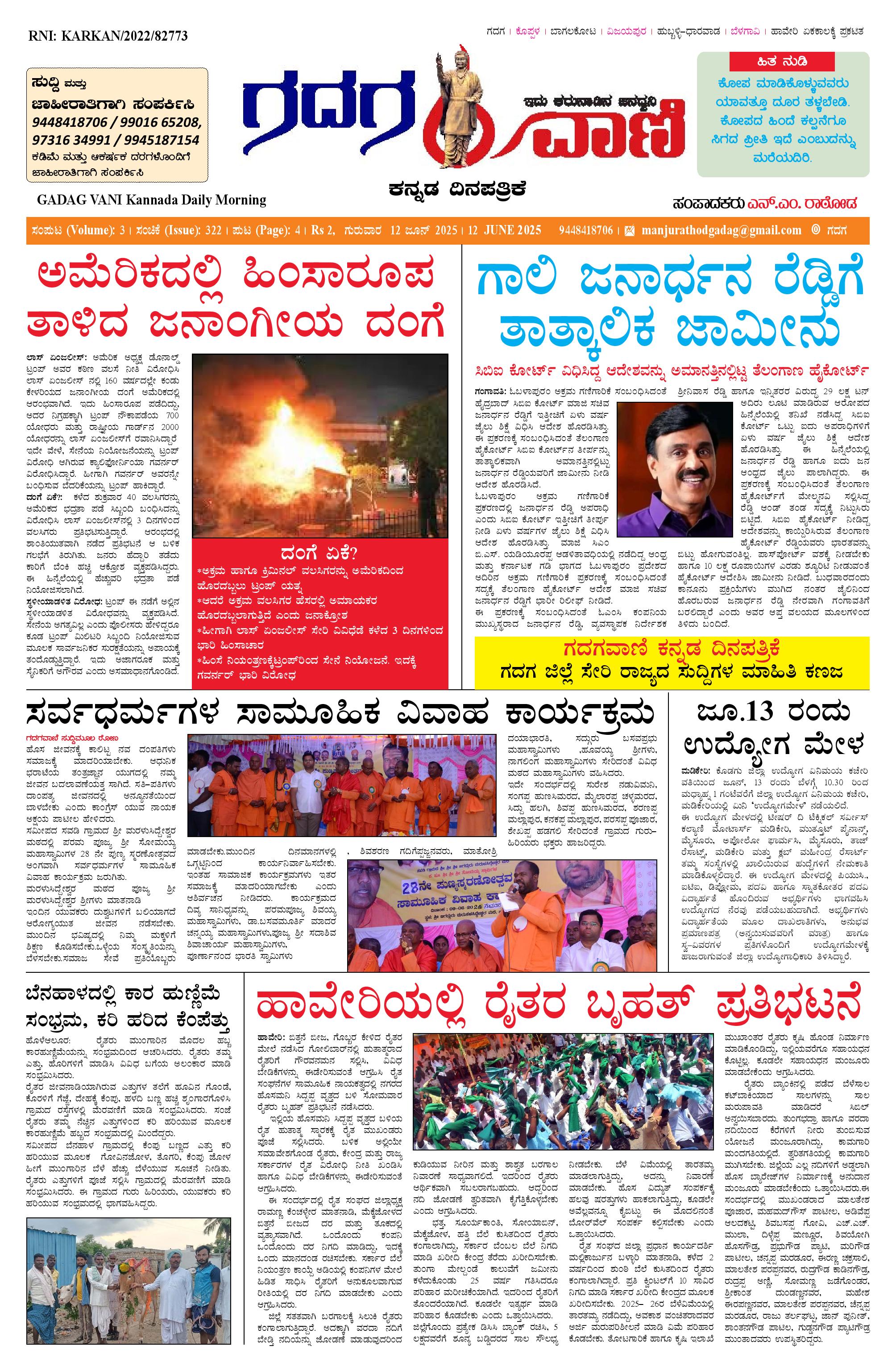 12 June 2025 ಗದಗವಾಣಿ June 12, 2025 << First << 1 >> Last >> Page 1Page 2Page 3Page 4 × 12 June 2025 ಗದಗವಾಣಿ 12312.06.2025 GADAGVANI PG 04-page-004 << First << 1 >> Last >> 12312.06.2025 GADAGVANI PG 04-page-004 1