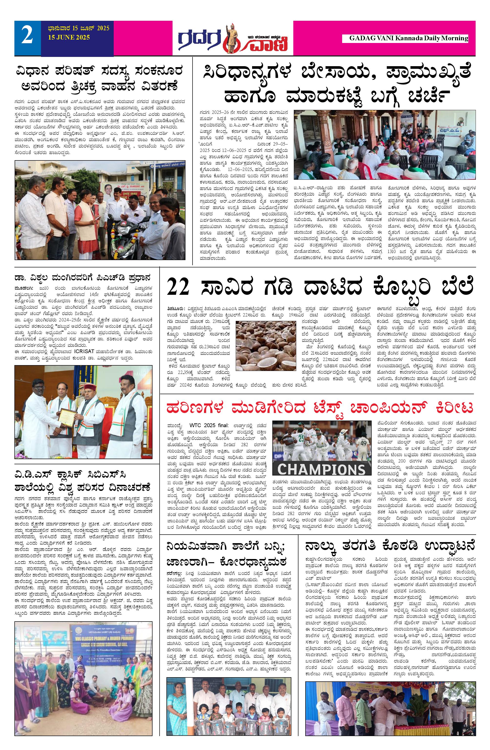 15 June 2025 ಗದಗವಾಣಿ Page: 2 June 15, 2025 << First << 2 >> Last >> Page 1Page 2Page 3Page 4 × 15 June 2025 ಗದಗವಾಣಿ 1215.06.2025 GADAGVANI PG 04-page-0034 << First << 2 >> Last >> 1215.06.2025 GADAGVANI PG 04-page-0034 2
