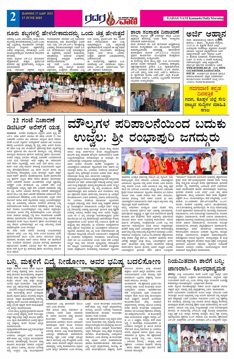 17 June 2025 ಗದಗವಾಣಿ Page: 2 June 17, 2025 << First << 2 >> Last >> Page 1Page 2Page 3Page 4 × 17 June 2025 ಗದಗವಾಣಿ 12317.06.2025 GADAGVANI PG 04-page-004 << First << 2 >> Last >> 12317.06.2025 GADAGVANI PG 04-page-004 2