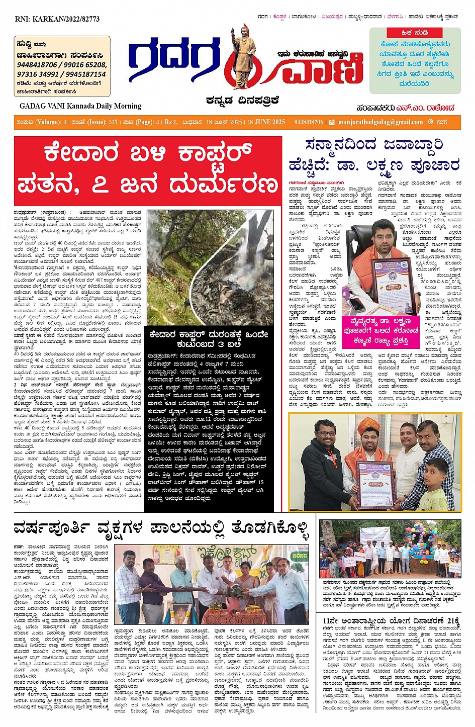 18 June 2025 ಗದಗವಾಣಿ June 18, 2025 << First << 1 >> Last >> Page 1Page 2Page 3Page 4 × 18 June 2025 ಗದಗವಾಣಿ 1234 << First << 1 >> Last >> 1234 1