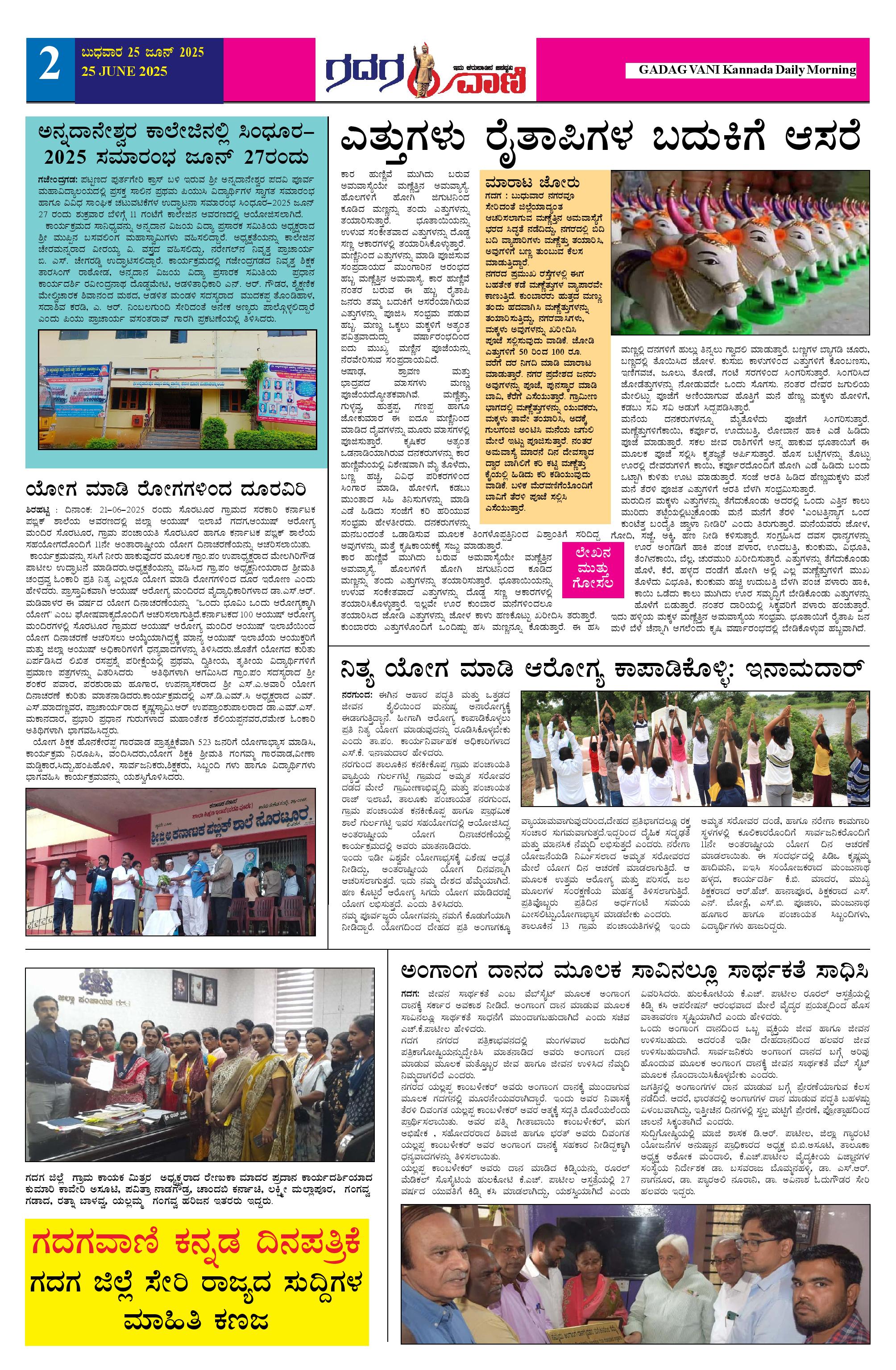 25 June 2025 ಗದಗವಾಣಿ Page: 2 June 25, 2025 << First << 2 >> Last >> Page 1Page 2Page 3Page 4 × 25 June 2025 ಗದಗವಾಣಿ 1225.06. 2025 GADAGVANI PG 04-page-0034 << First << 2 >> Last >> 1225.06. 2025 GADAGVANI PG 04-page-0034 2