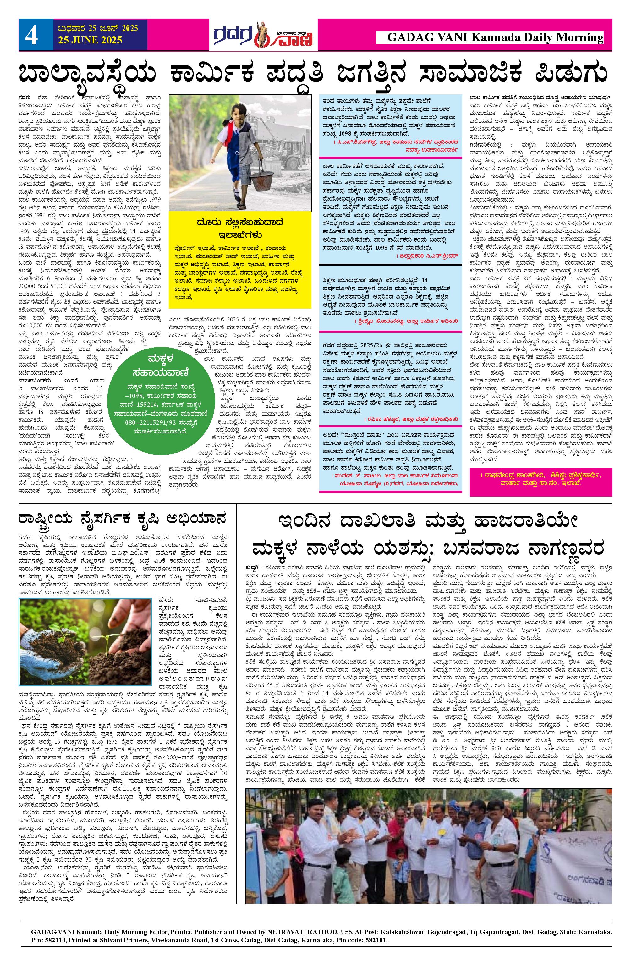 25 June 2025 ಗದಗವಾಣಿ Page: 4 June 25, 2025 << First << 4 >> Last >> Page 1Page 2Page 3Page 4 × 25 June 2025 ಗದಗವಾಣಿ 1225.06. 2025 GADAGVANI PG 04-page-0034 << First << 4 >> Last >> 1225.06. 2025 GADAGVANI PG 04-page-0034 4