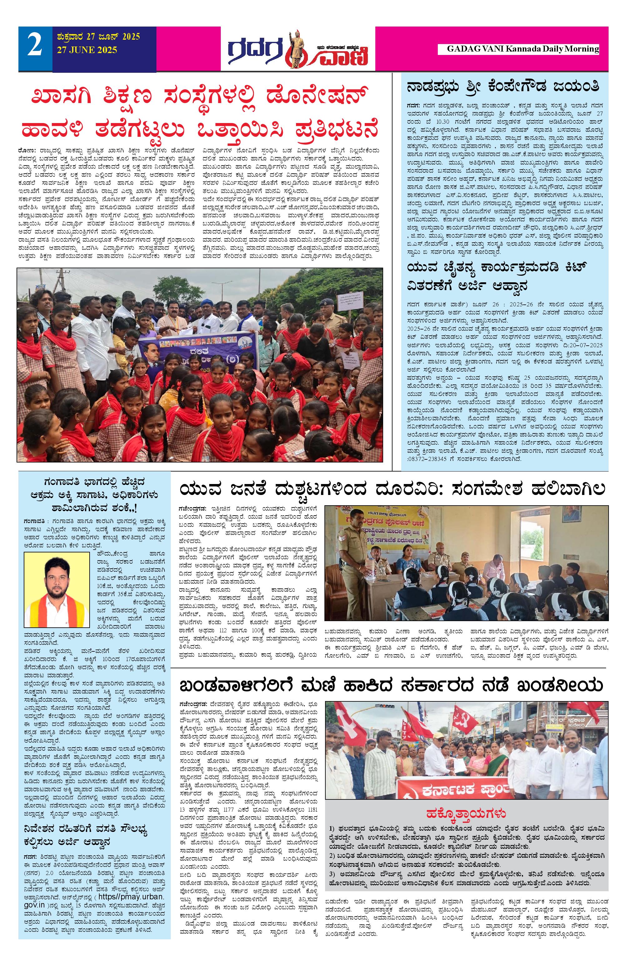 27 June 2025 ಗದಗವಾಣಿ Page: 2 June 27, 2025 << First << 2 >> Last >> Page 1Page 2Page 3Page 4 × 27 June 2025 ಗದಗವಾಣಿ 12327.06.2025 GADAGVANI PG 04-page-004 << First << 2 >> Last >> 12327.06.2025 GADAGVANI PG 04-page-004 2