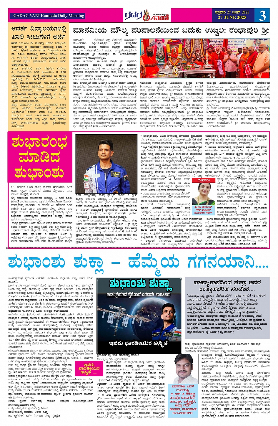 27 June 2025 ಗದಗವಾಣಿ Page: 3 June 27, 2025 << First << 3 >> Last >> Page 1Page 2Page 3Page 4 × 27 June 2025 ಗದಗವಾಣಿ 12327.06.2025 GADAGVANI PG 04-page-004 << First << 3 >> Last >> 12327.06.2025 GADAGVANI PG 04-page-004 3