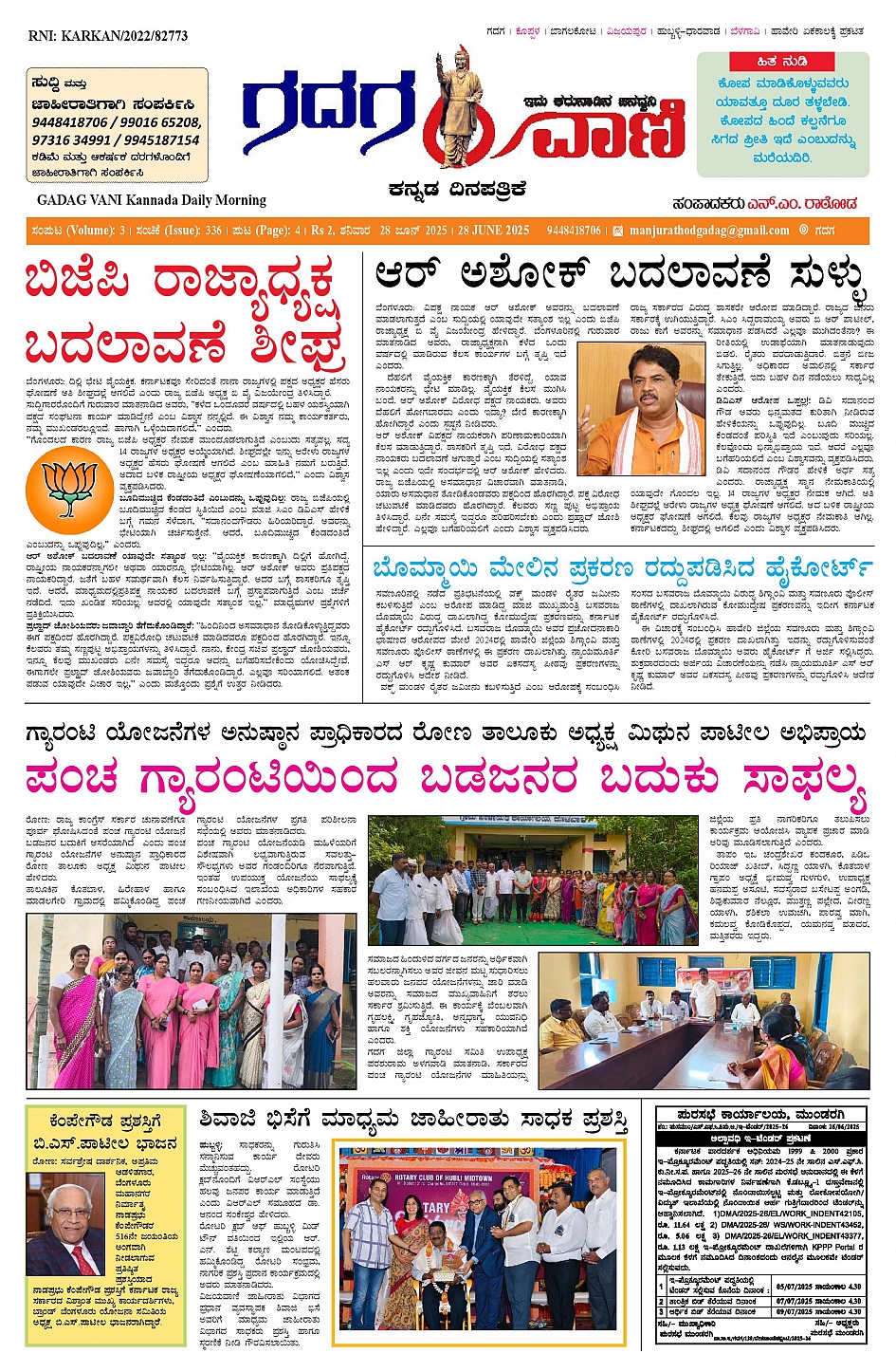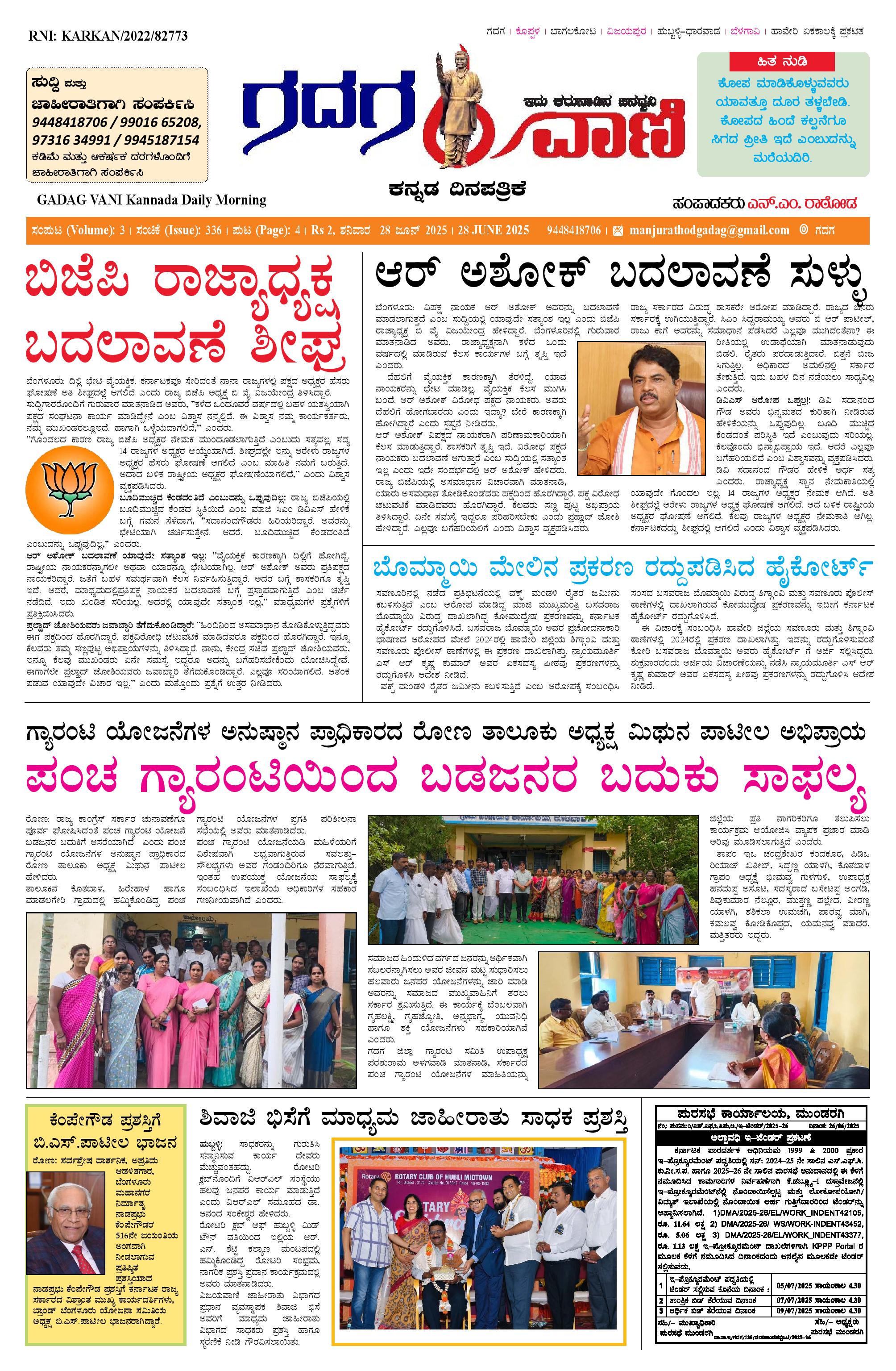 28 June 2025 ಗದಗವಾಣಿ June 28, 2025 << First << 1 >> Last >> Page 1Page 2Page 3Page 4 × 28 June 2025 ಗದಗವಾಣಿ 12328.06.2025 GADAGVANI PG 04 NEW-page-004 << First << 1 >> Last >> 12328.06.2025 GADAGVANI PG 04 NEW-page-004 1