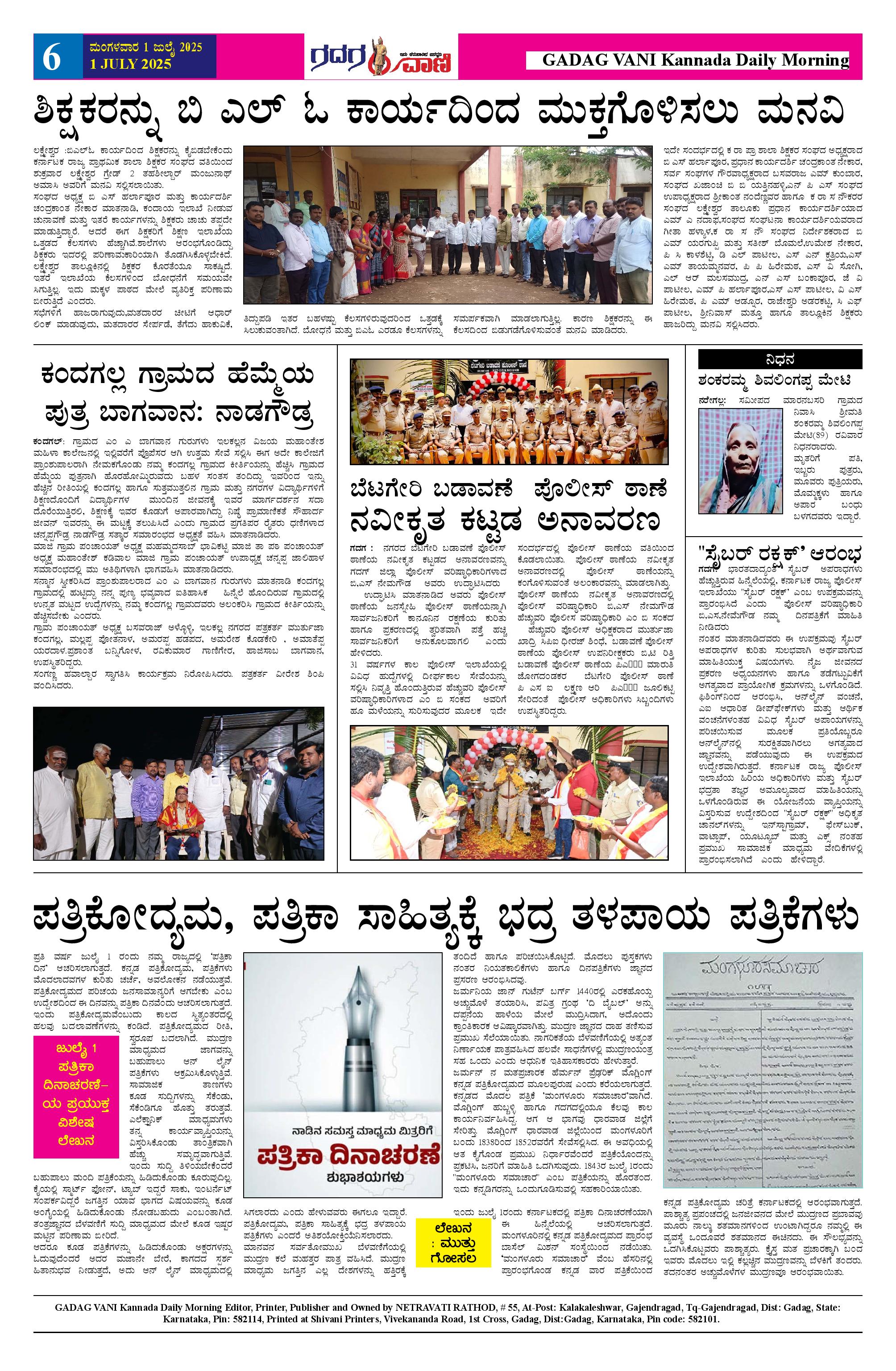 1 July 2025 ಗದಗವಾಣಿ Page: 6 July 01, 2025 << First << 6 >> Last >> Page 1Page 2Page 3Page 4Page 5Page 6 × 1 July 2025 ಗದಗವಾಣಿ 12301.07.2025 GADAGVANI PG 06 NEW-page-00456 << First << 6 >> Last >> 12301.07.2025 GADAGVANI PG 06 NEW-page-00456 6