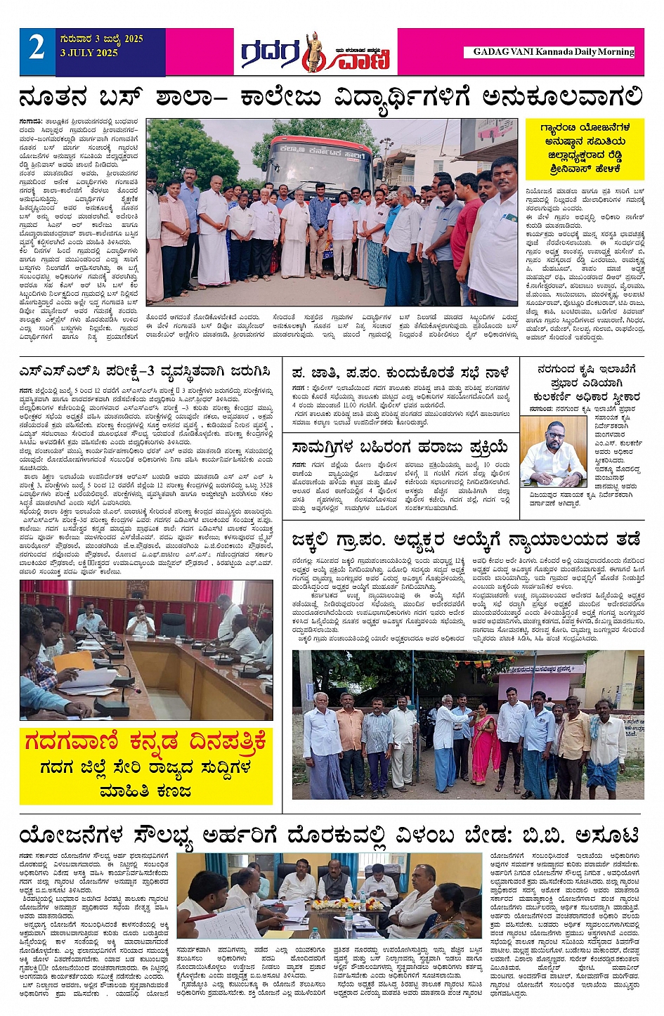 3 July 2025 ಗದಗವಾಣಿ Page: 2 July 03, 2025 << First << 2 >> Last >> Page 1Page 2Page 3Page 4Page 5Page 6 × 3 July 2025 ಗದಗವಾಣಿ 123456 << First << 2 >> Last >> 123456 2