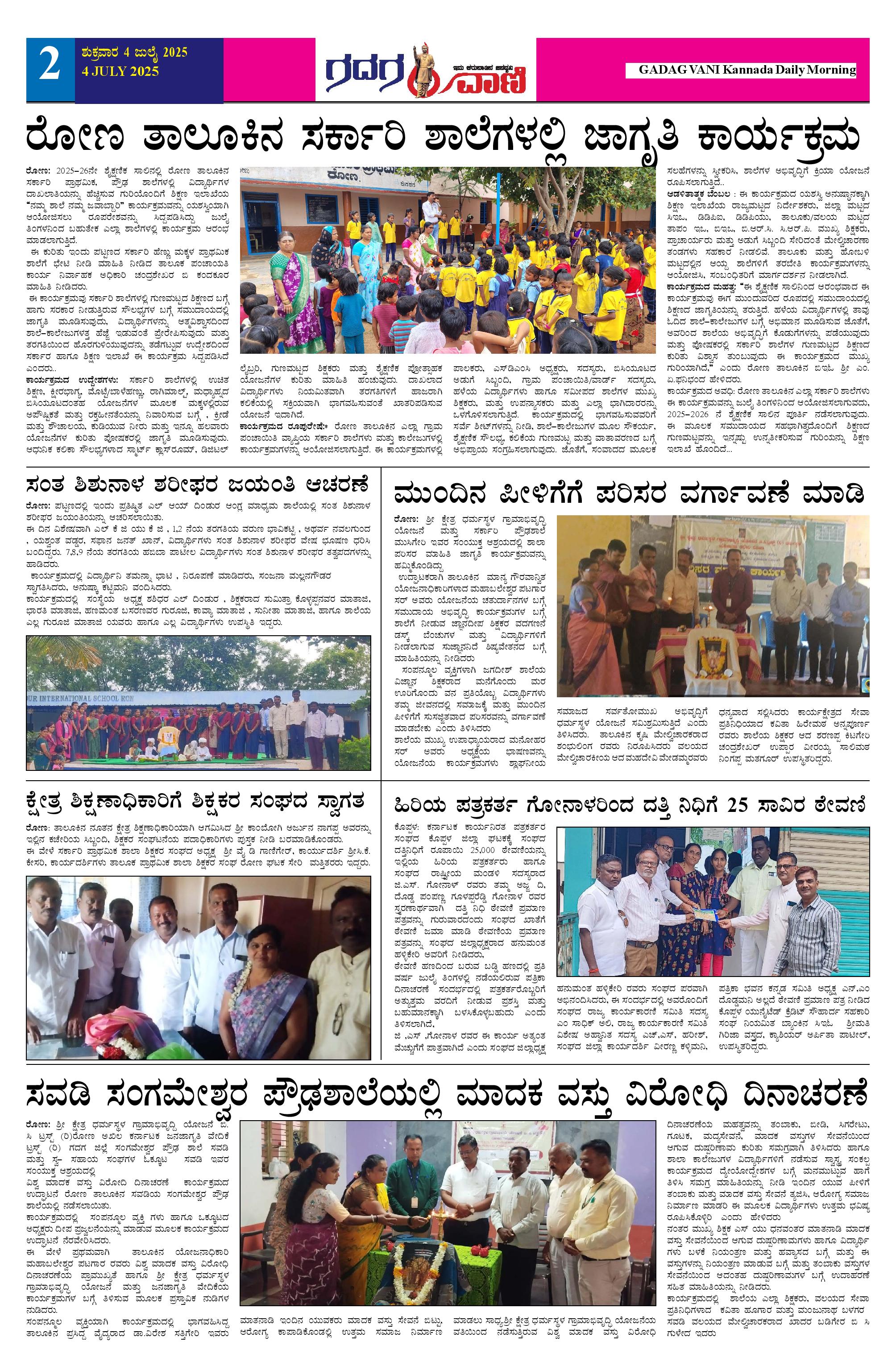 4 July 2025 ಗದಗವಾಣಿ Page: 2 July 04, 2025 << First << 2 >> Last >> Page 1Page 2Page 3Page 4Page 5Page 6 × 4 July 2025 ಗದಗವಾಣಿ 12304.07.2025 GADAGVANI PG 06-page-00456 << First << 2 >> Last >> 12304.07.2025 GADAGVANI PG 06-page-00456 2