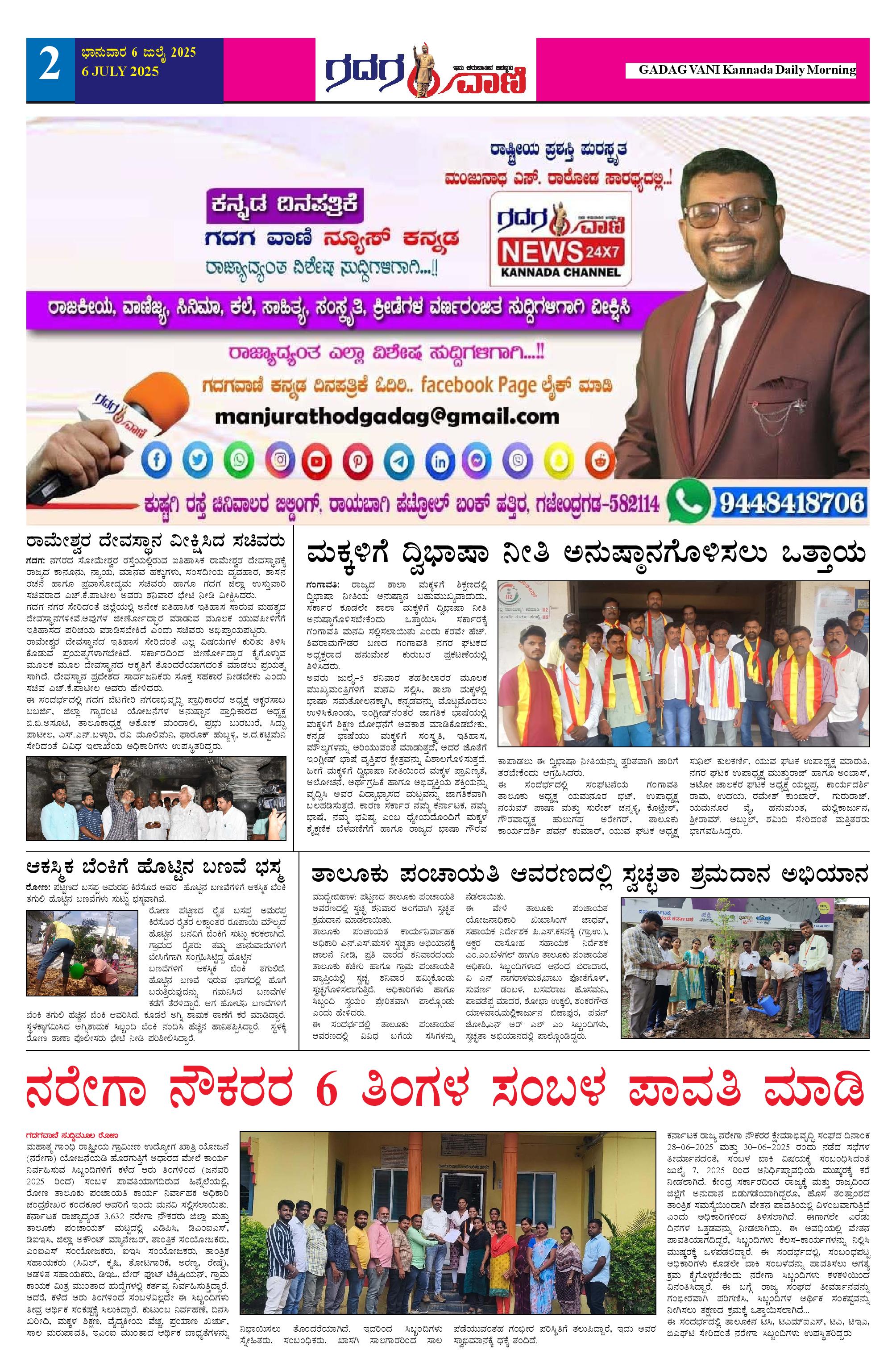 6 July 2025 ಗದಗವಾಣಿ Page: 2 July 06, 2025 << First << 2 >> Last >> Page 1Page 2Page 3Page 4Page 5Page 6 × 6 July 2025 ಗದಗವಾಣಿ 1234506.07.2025 GADAGVANI PG 06 NEW-page-006 << First << 2 >> Last >> 1234506.07.2025 GADAGVANI PG 06 NEW-page-006 2