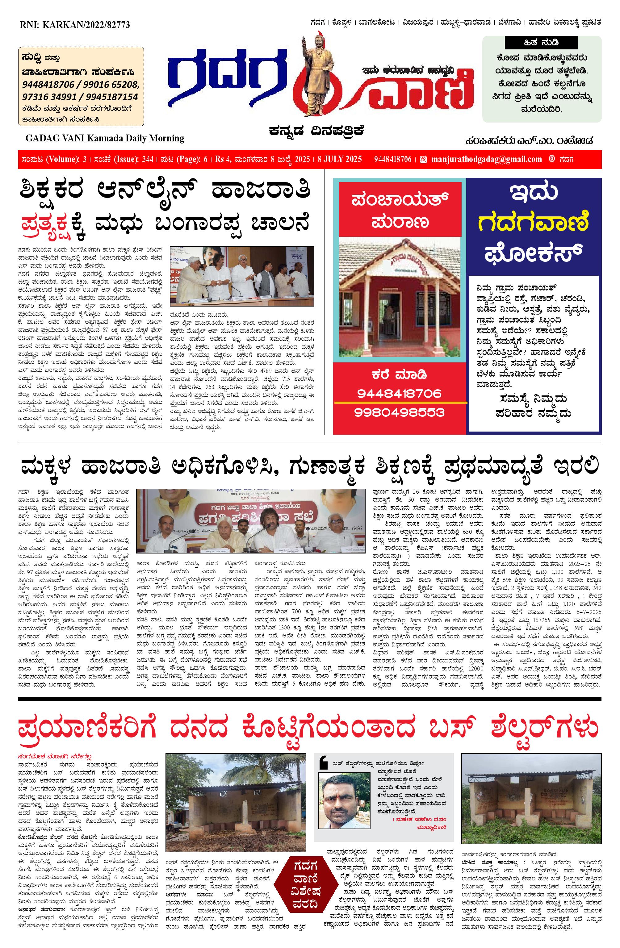 8 July 2025 ಗದಗವಾಣಿ July 08, 2025 << First << 1 >> Last >> Page 1Page 2Page 3Page 4Page 5Page 6 × 8 July 2025 ಗದಗವಾಣಿ 1234508.07.2025 GADAGVANI PG 06 NEW-page-006 << First << 1 >> Last >> 1234508.07.2025 GADAGVANI PG 06 NEW-page-006 1