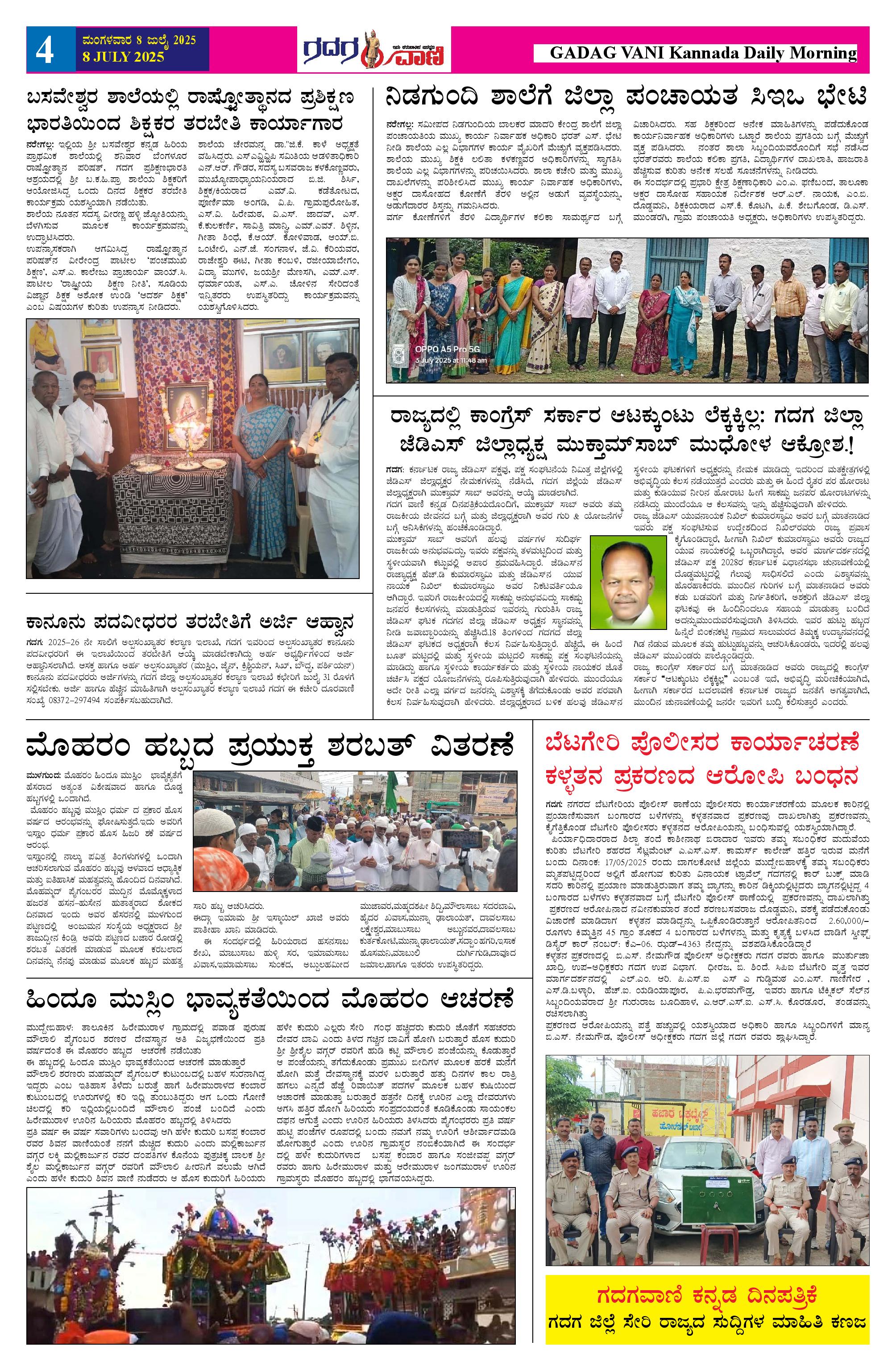 8 July 2025 ಗದಗವಾಣಿ Page: 4 July 08, 2025 << First << 4 >> Last >> Page 1Page 2Page 3Page 4Page 5Page 6 × 8 July 2025 ಗದಗವಾಣಿ 1234508.07.2025 GADAGVANI PG 06 NEW-page-006 << First << 4 >> Last >> 1234508.07.2025 GADAGVANI PG 06 NEW-page-006 4