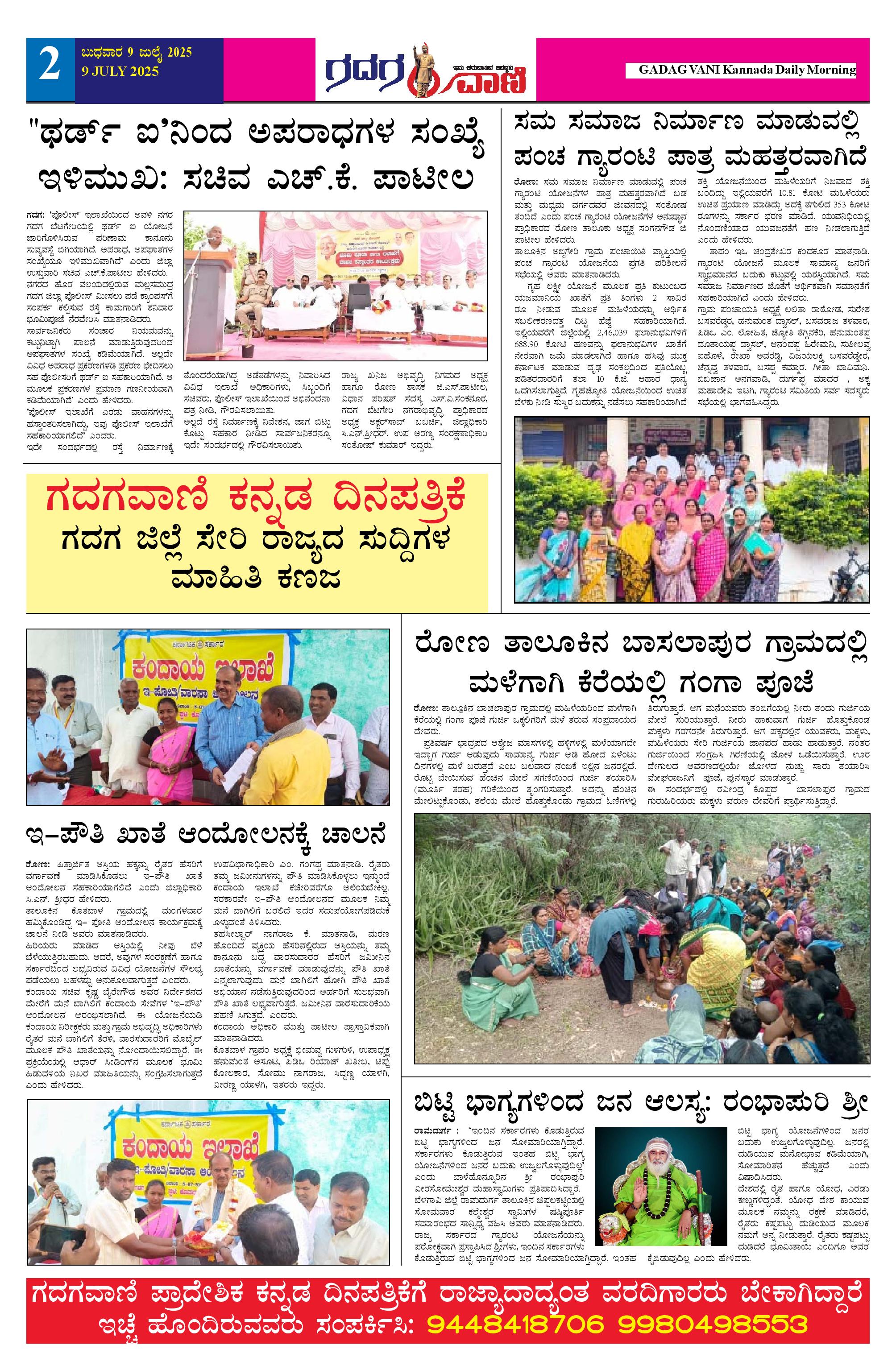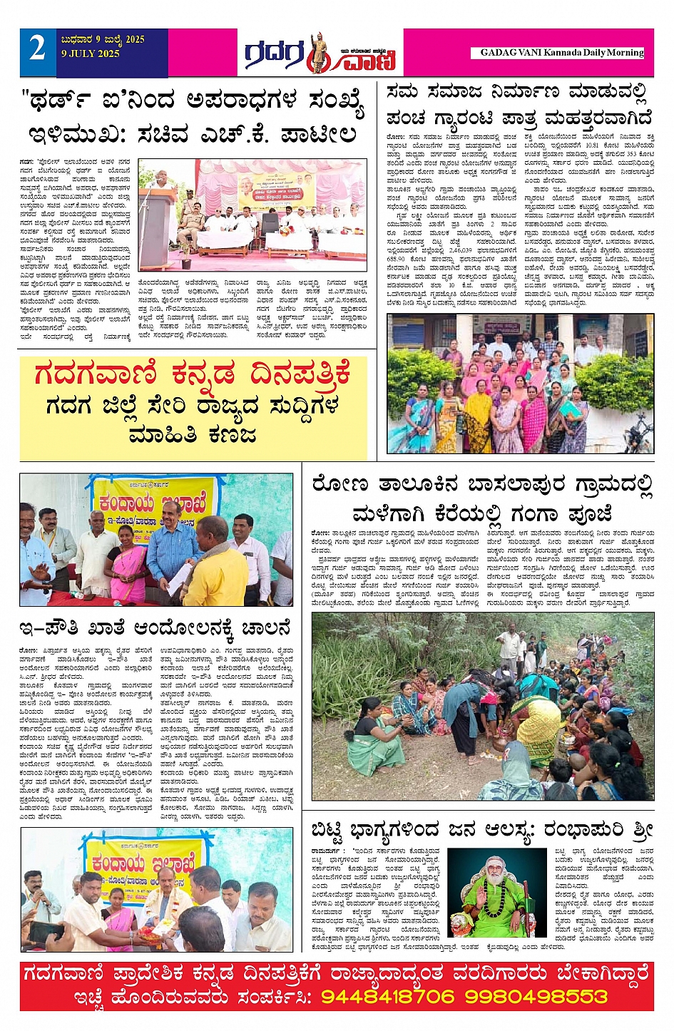 9 July 2025 ಗದಗವಾಣಿ Page: 2 July 09, 2025 << First << 2 >> Last >> Page 1Page 2Page 3Page 4Page 5Page 6 × 9 July 2025 ಗದಗವಾಣಿ 1234509.07.2025 GADAGVANI PG 06 NEW-page-006 << First << 2 >> Last >> 1234509.07.2025 GADAGVANI PG 06 NEW-page-006 2